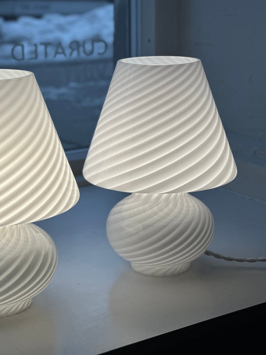 Vintage Murano Swirl Mushroom Lamper - Hvid