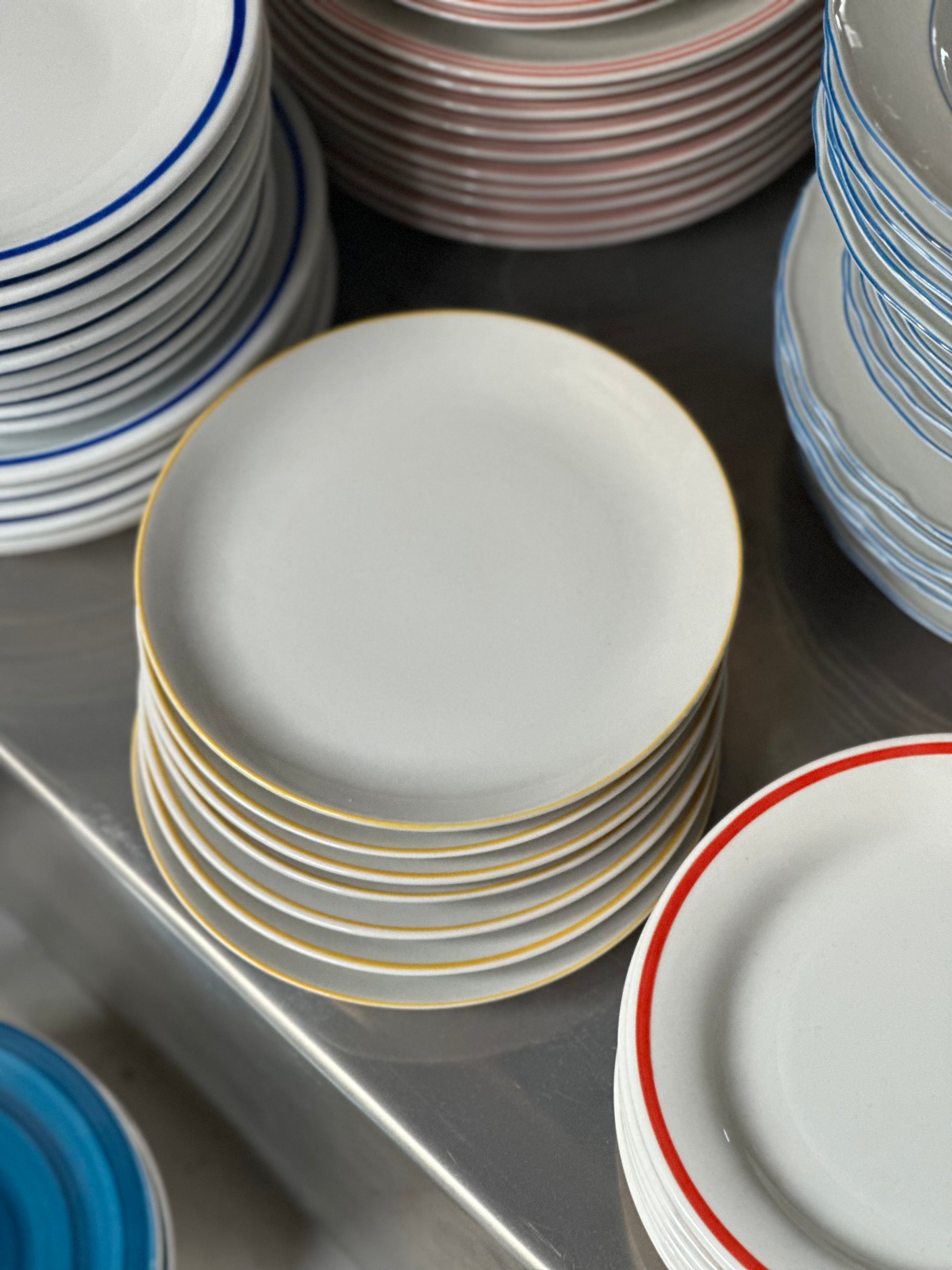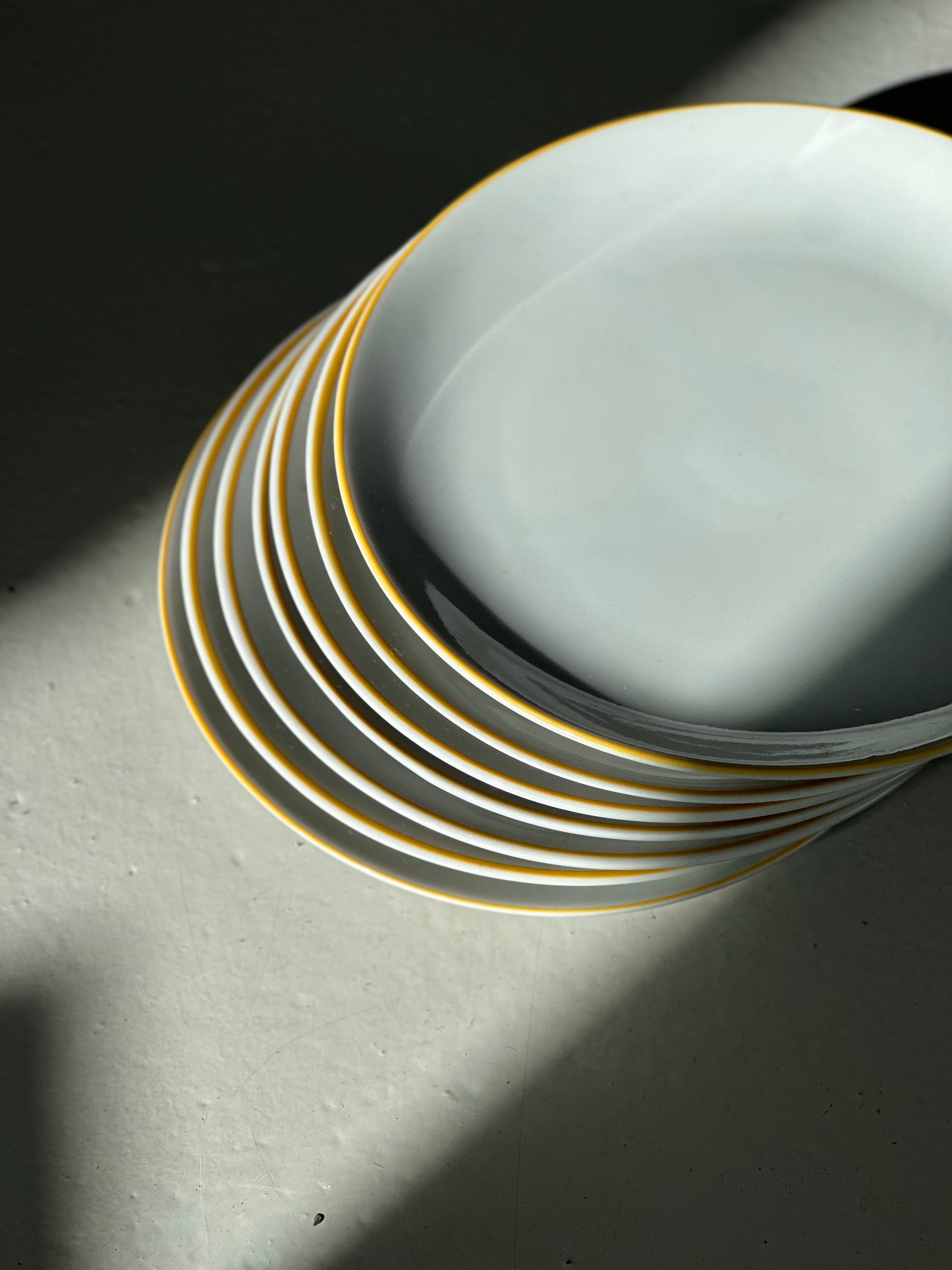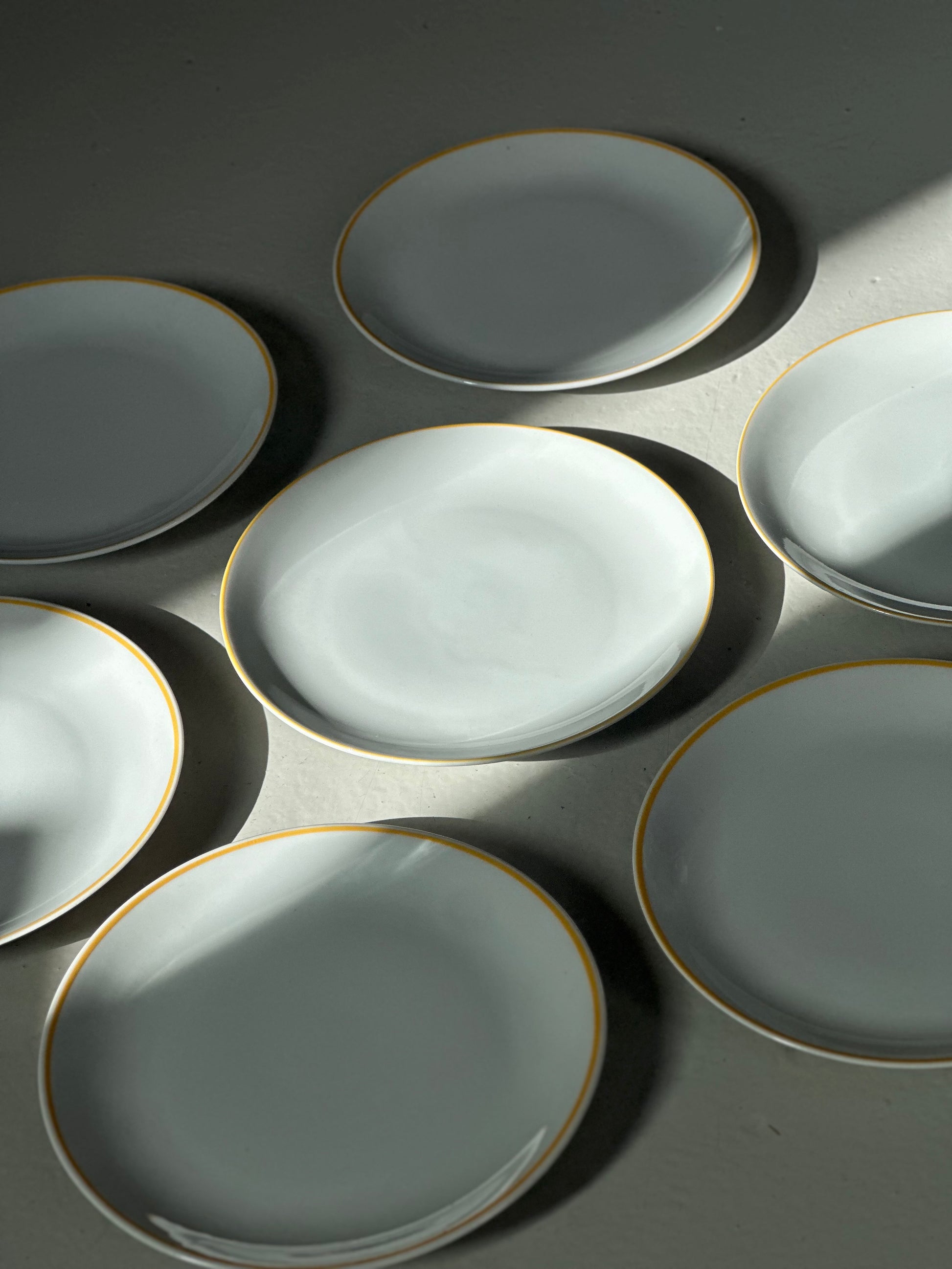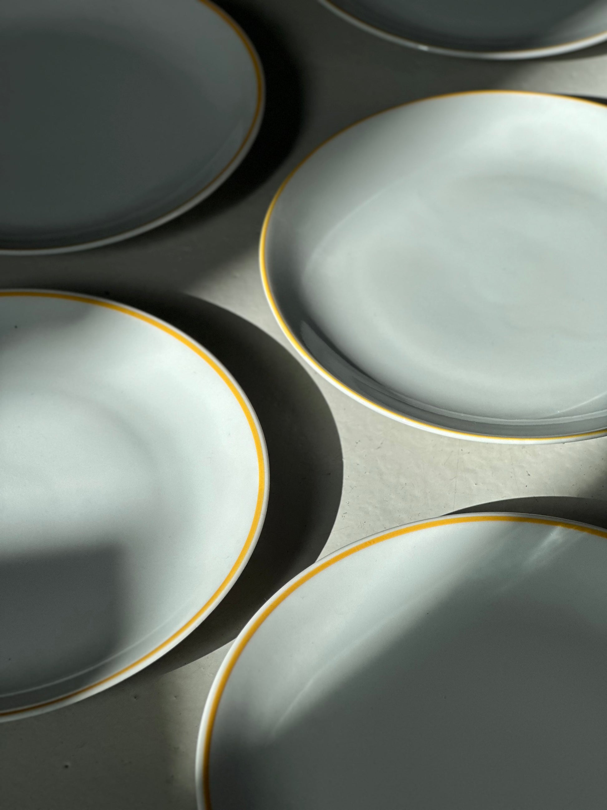 Vintage bistro frokost tallerkener med gule kanter. De er fundet i Italien og er uden skår og i super flot stand.