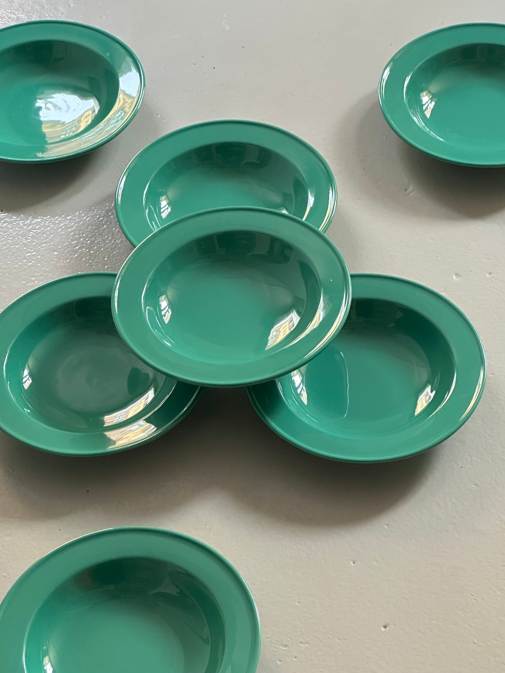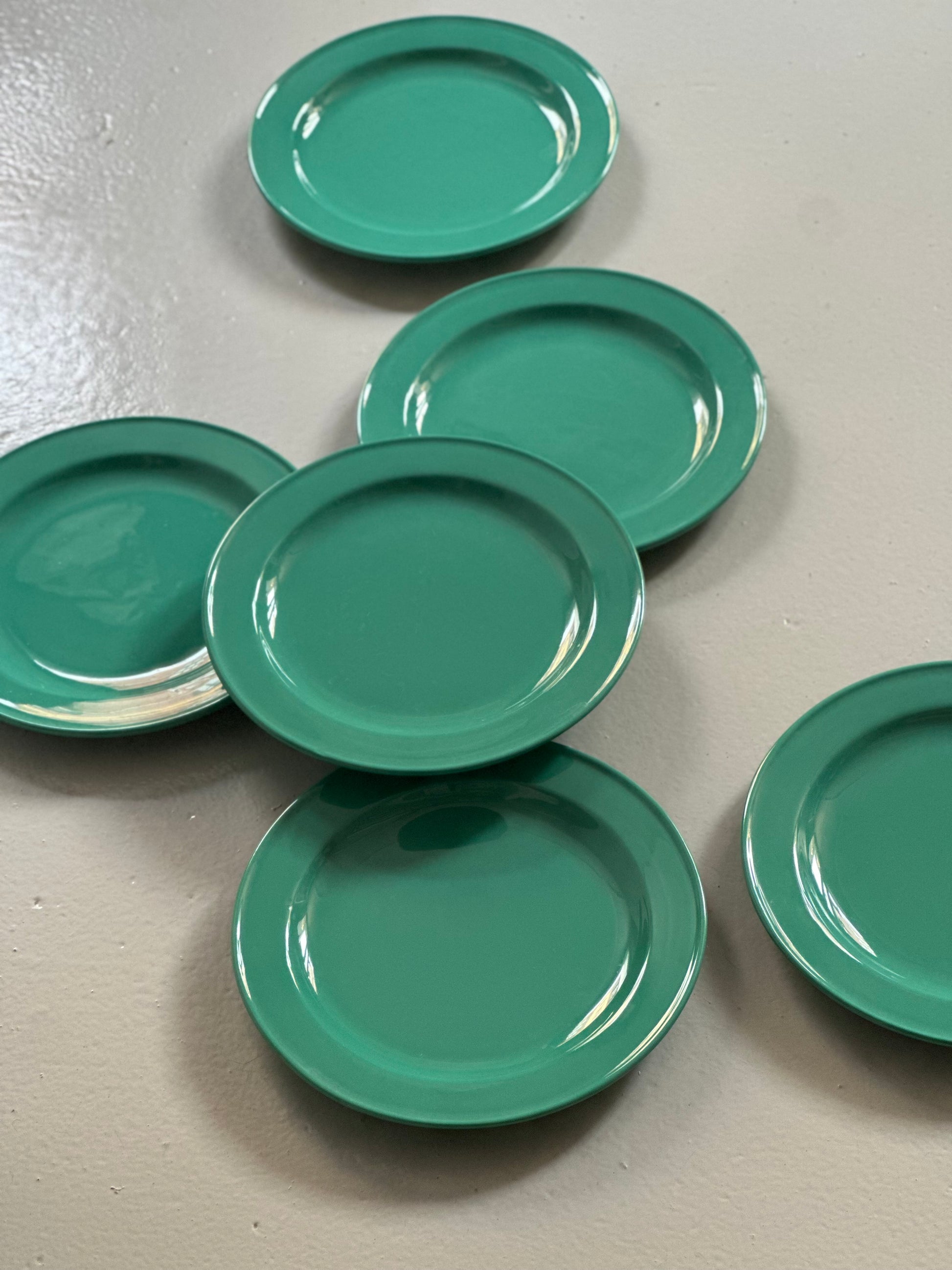 Italienske vintage tallerkener i den lækreste chunky grønne glasur. De er fundet i Italien og er alle i super super flot stand uden skår.