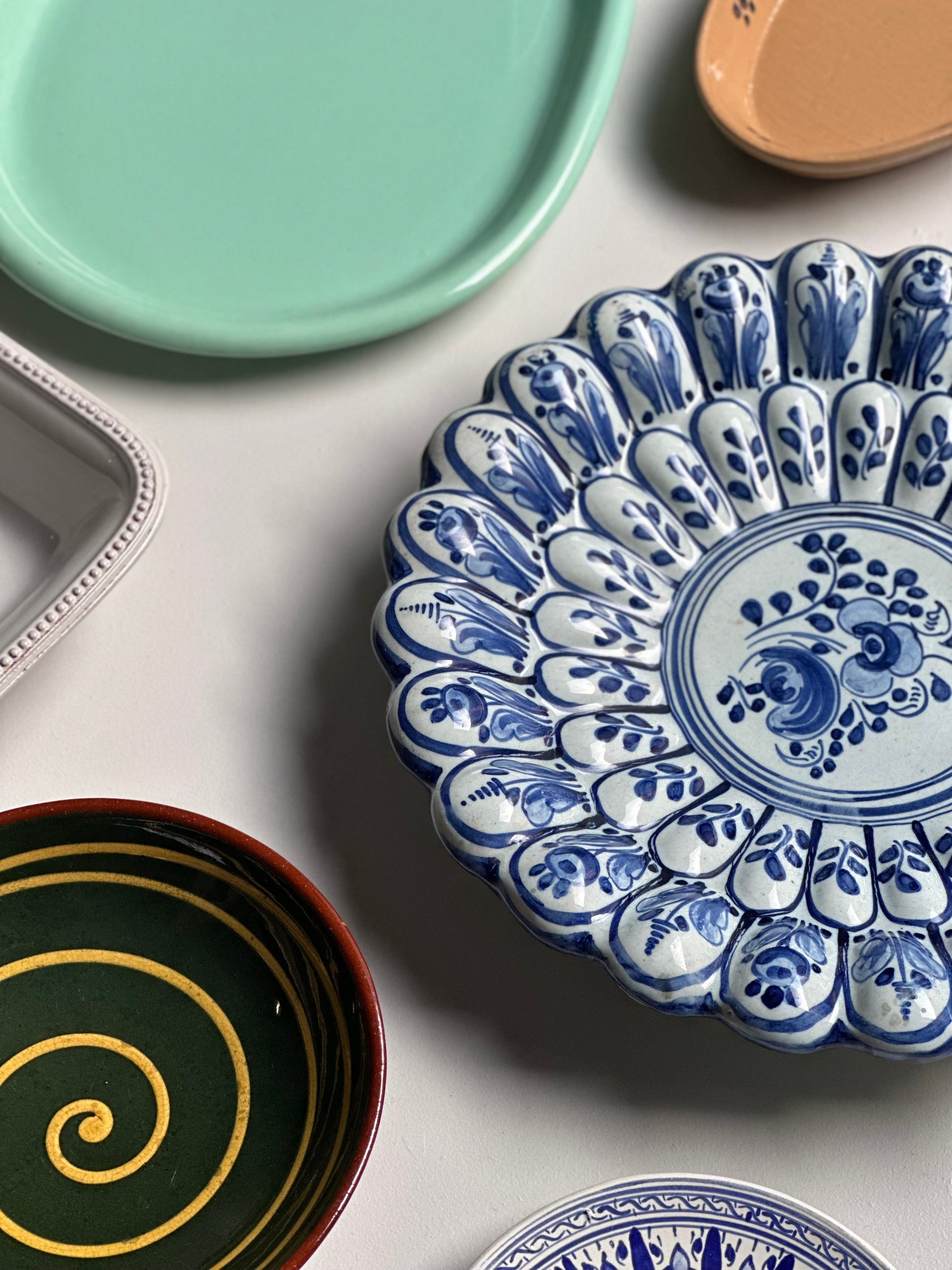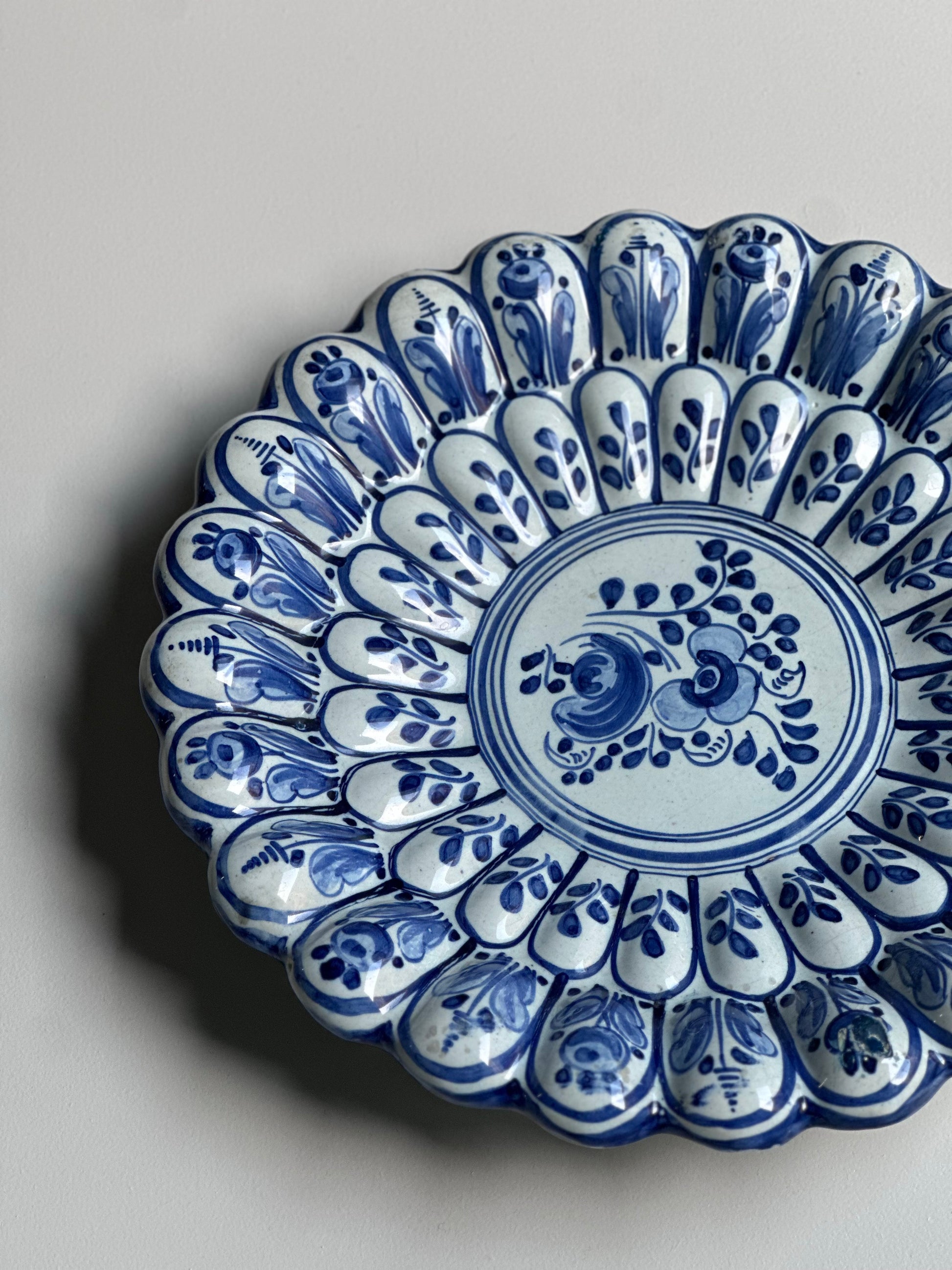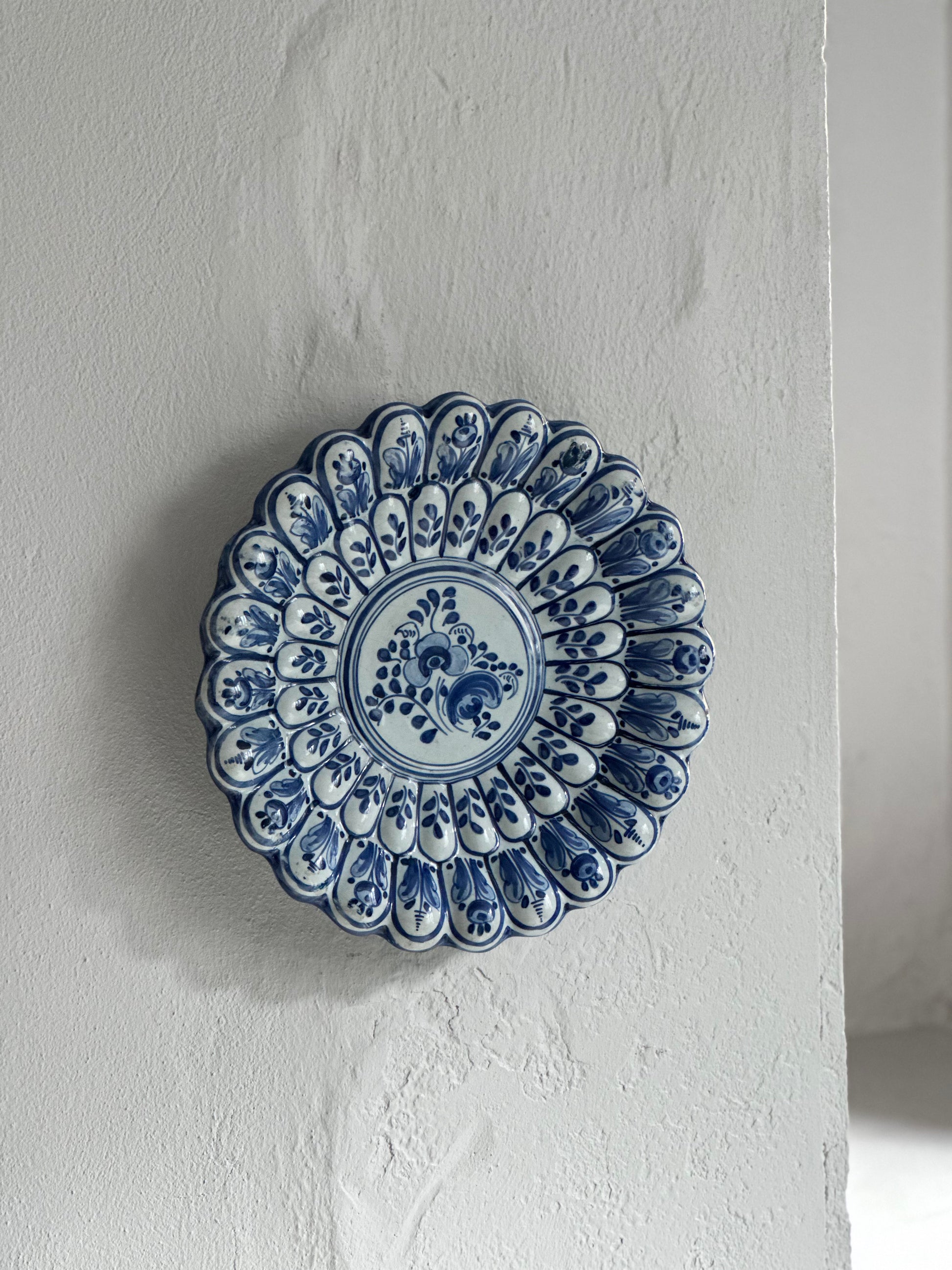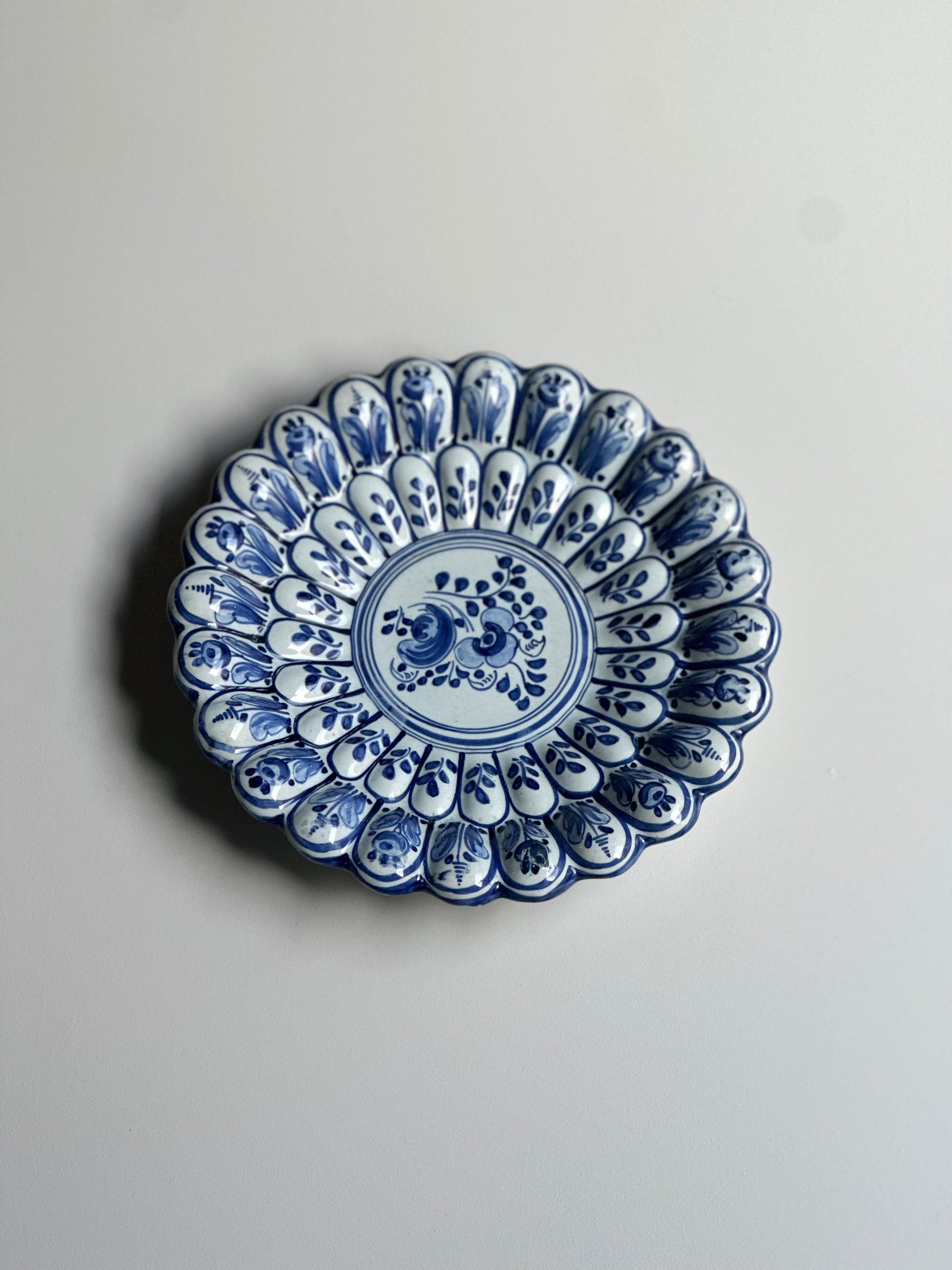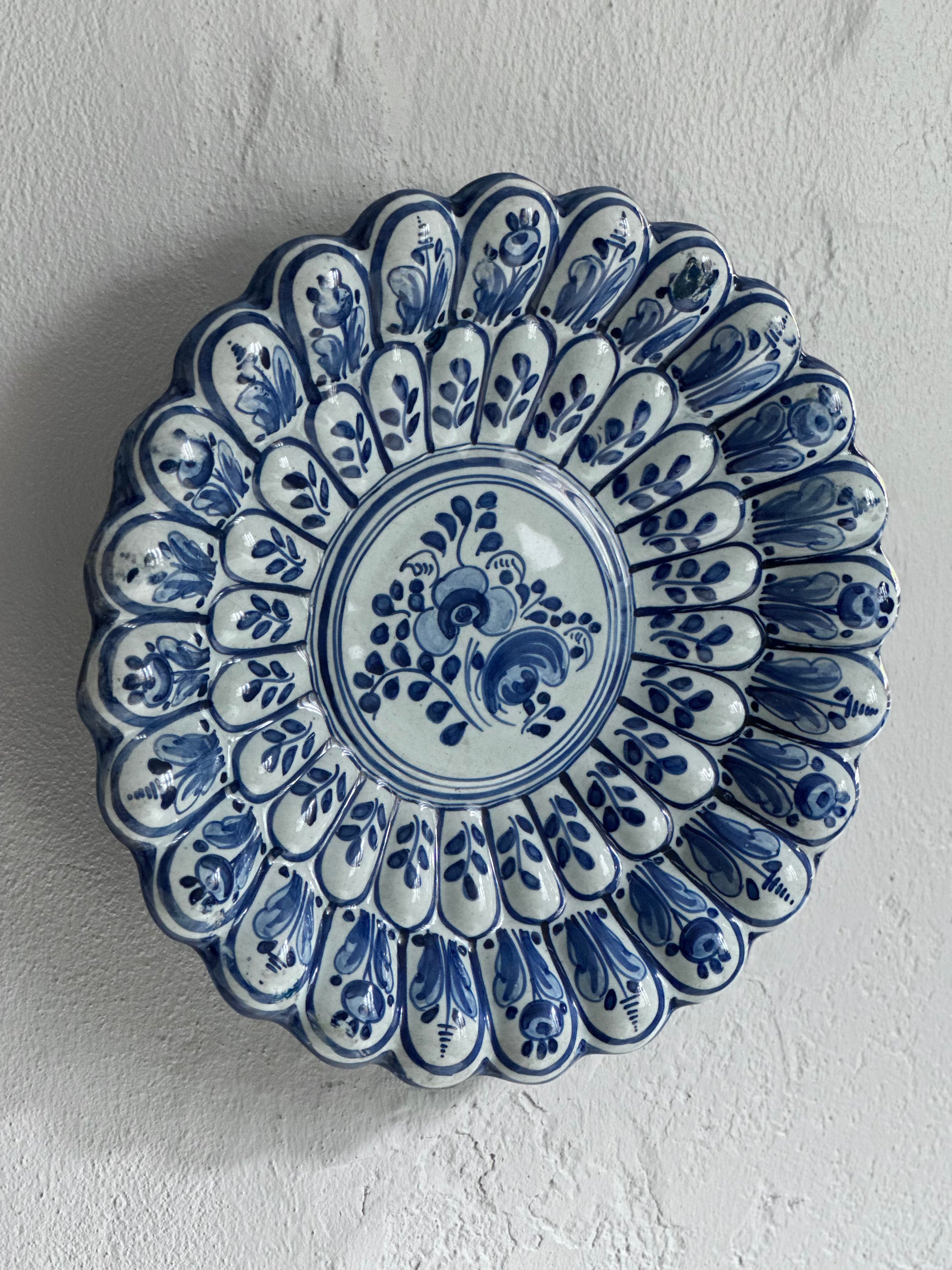 Stort italiensk vintage fad den vildeste struktur og håndmalet mønster. Det er fundet i Italien og er i flot stand med alm lette brugsspor (se billeder). Der er ophæng bagpå.