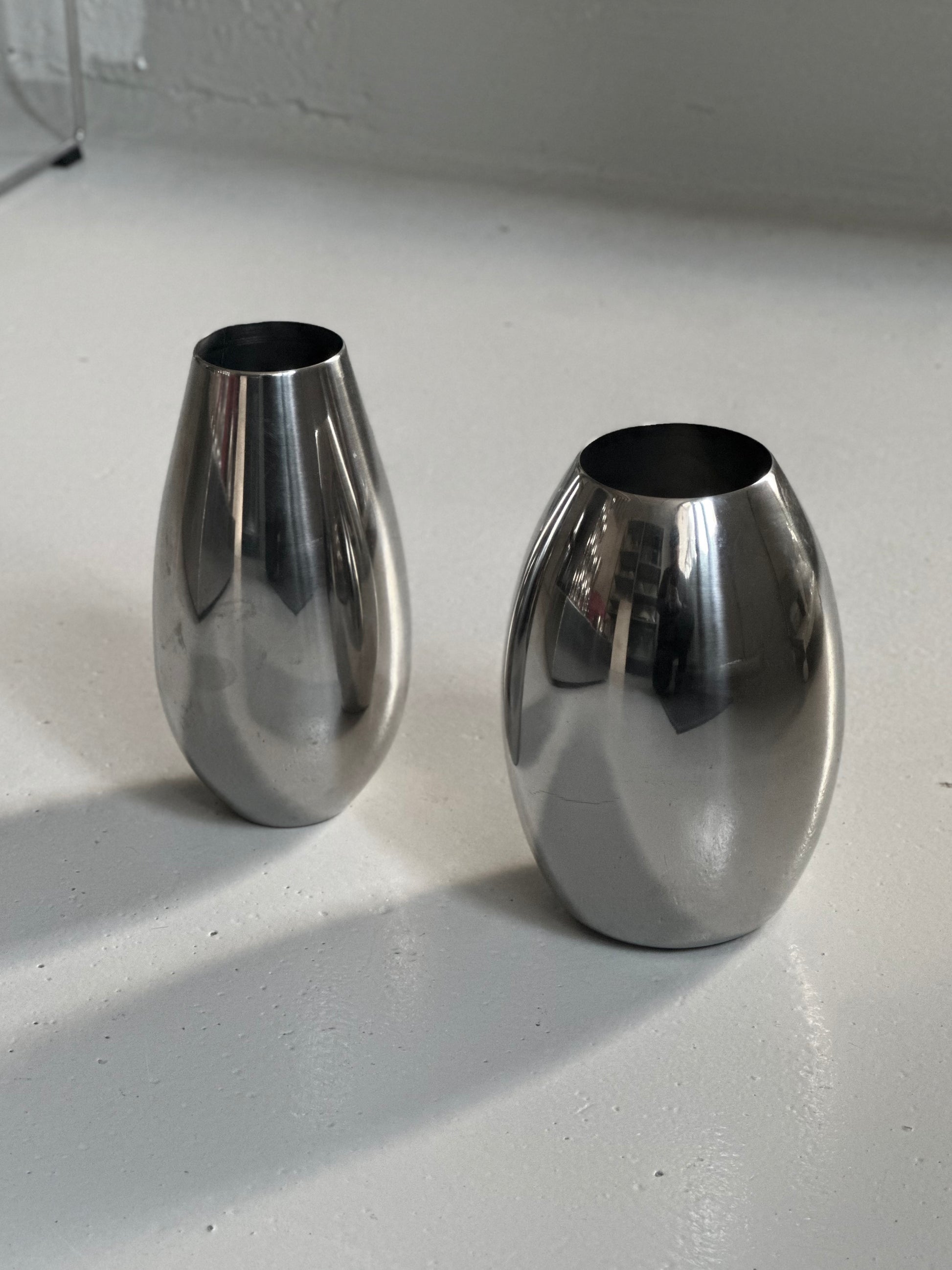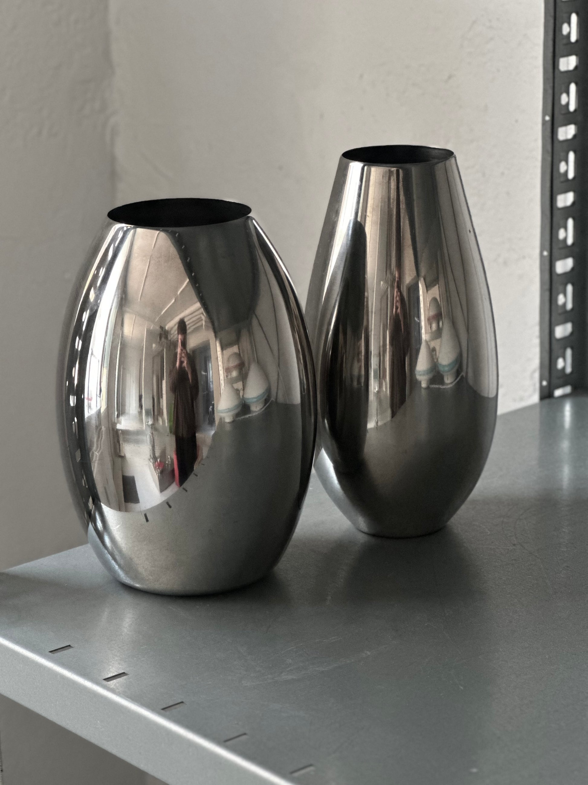 Italienske vaser i krom. De er fundet i Italien og er i flot stand med kun alm lette brugsspor.