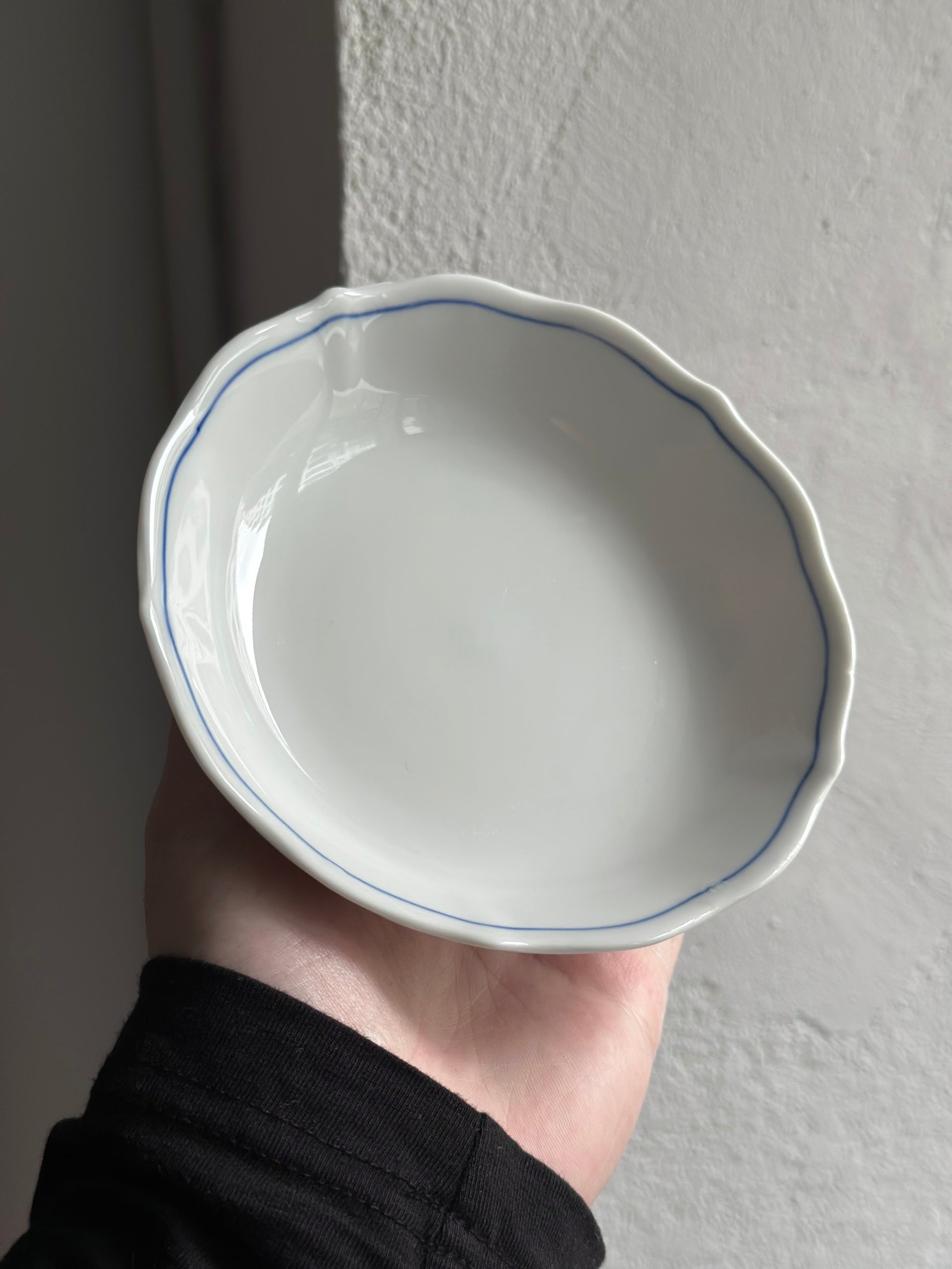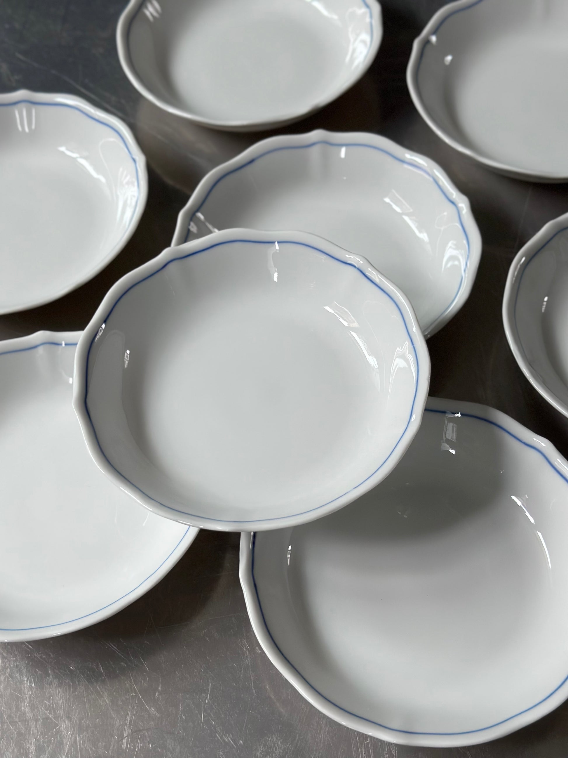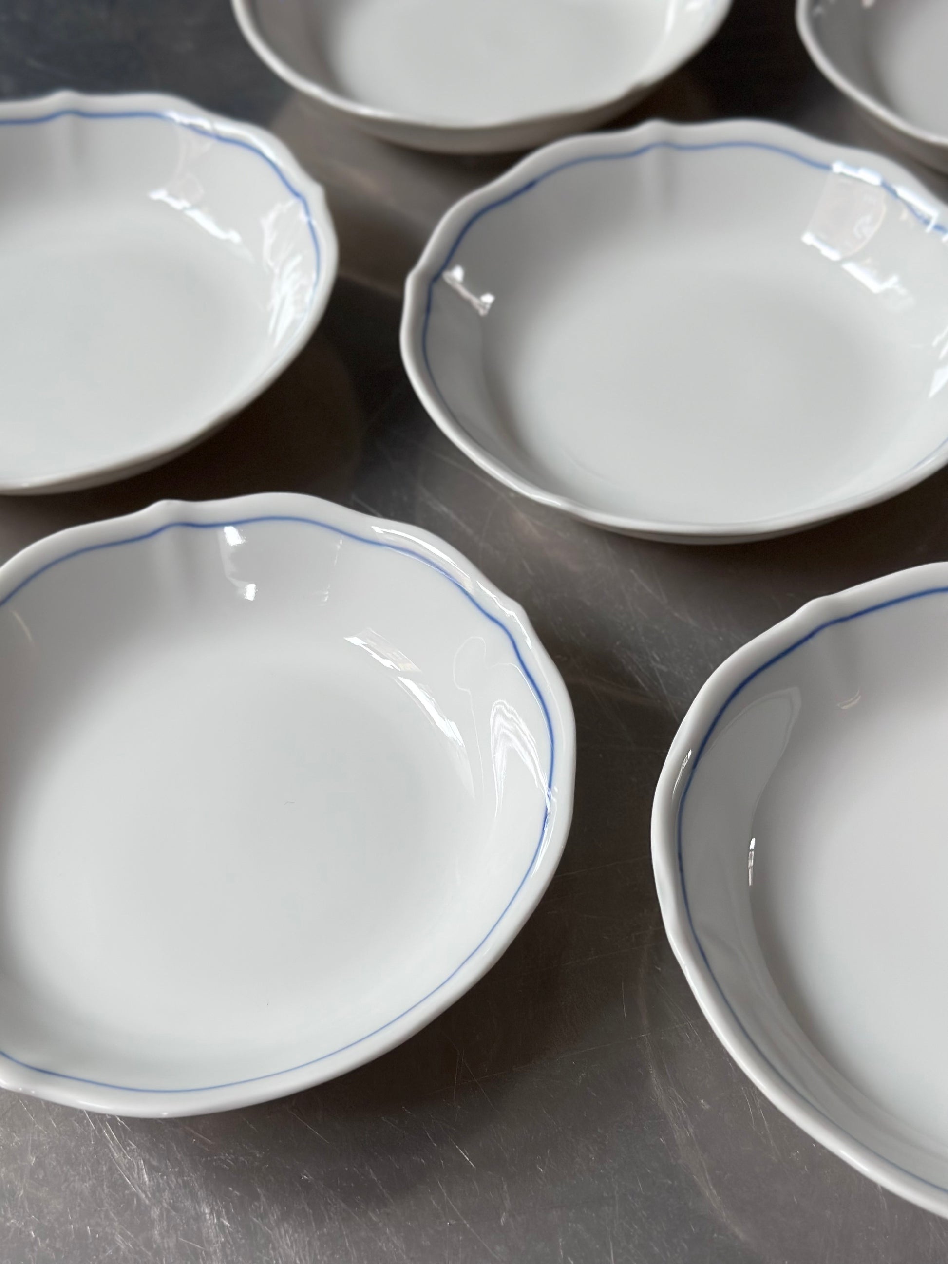 Italienske vintage skåle med blå kanter fundet i Italien. De er alle i flot stand uden skår og med kun alm lette brugsspor.