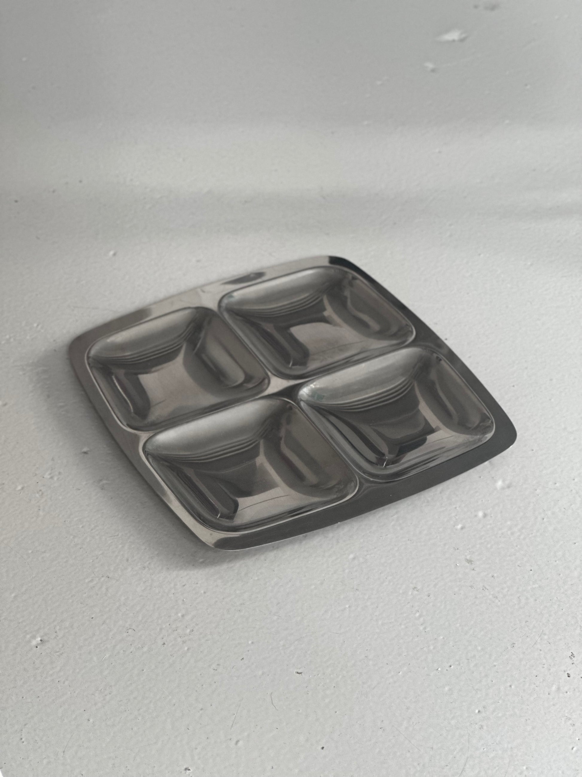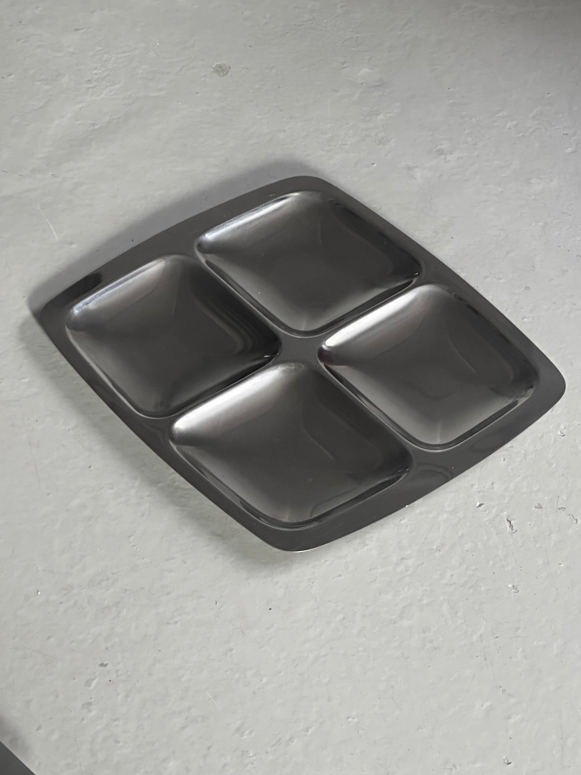 Italienske vintage fade i stål med 4 rum. De er begge i super flot stand med kun alm lette brugsspor.