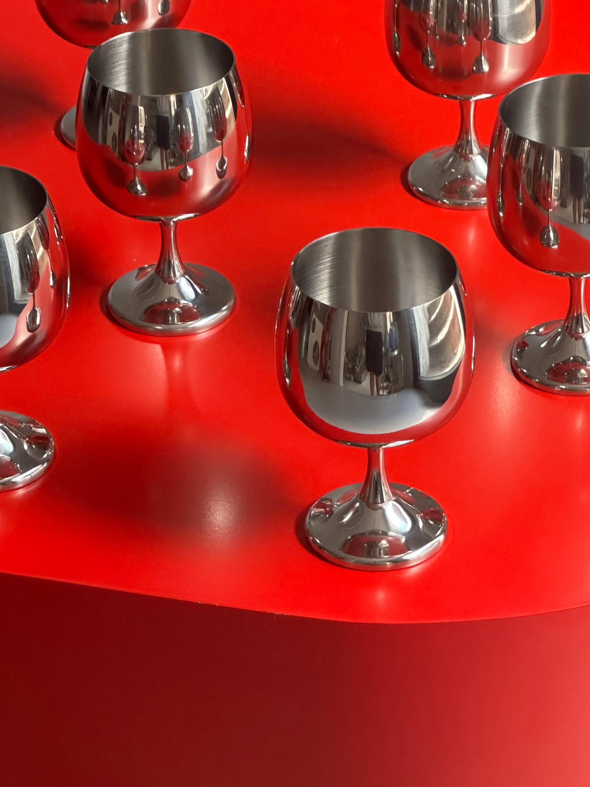Italienske vintage rødvinsglas i stål. De er fundet i Italien og er i fantastisk flot stand. De er også skønne som serveringsskåle til oliven etc.