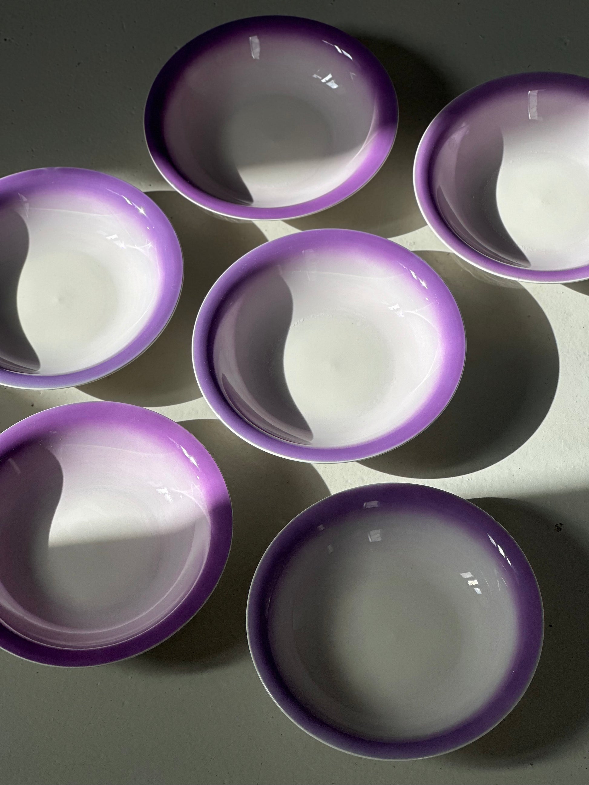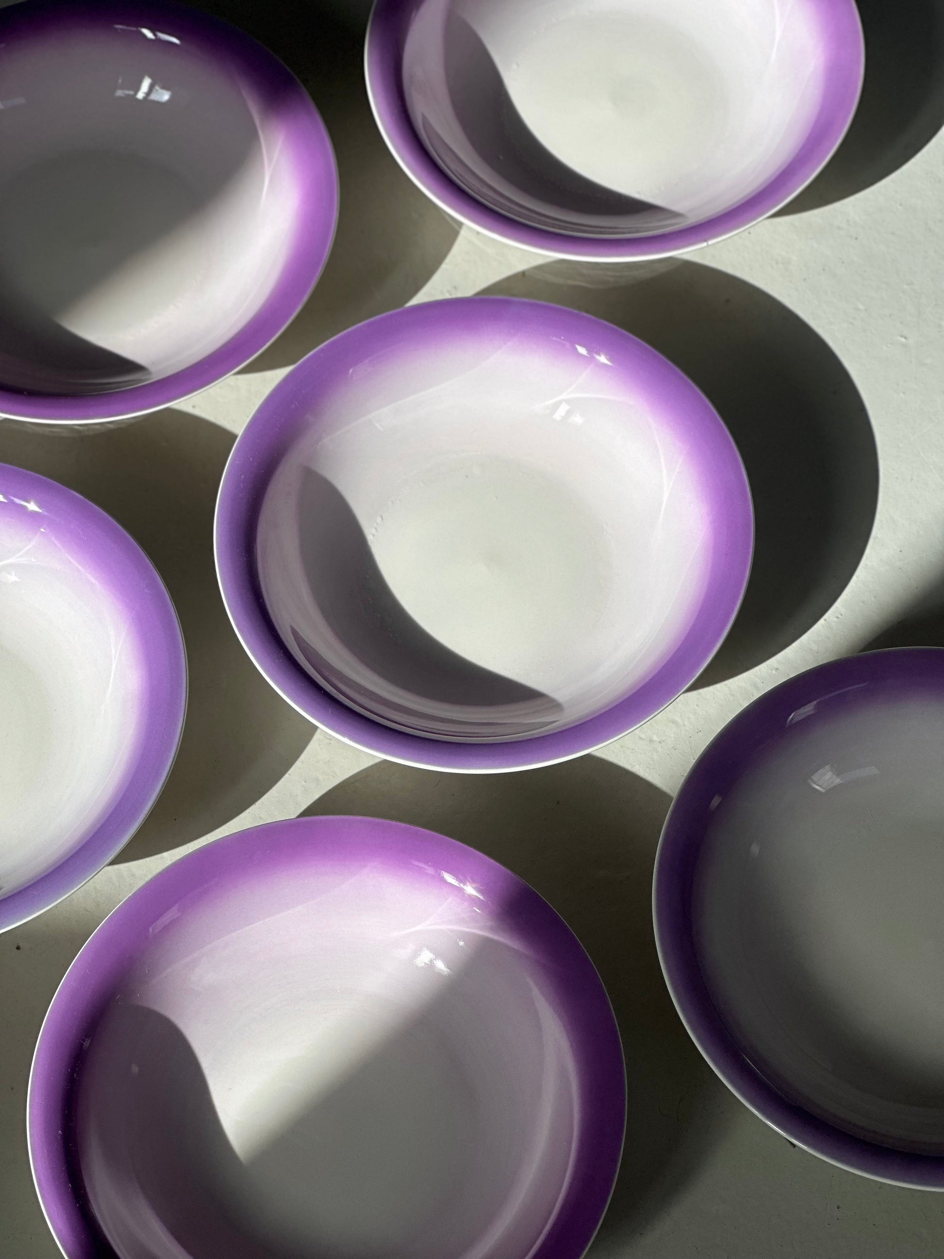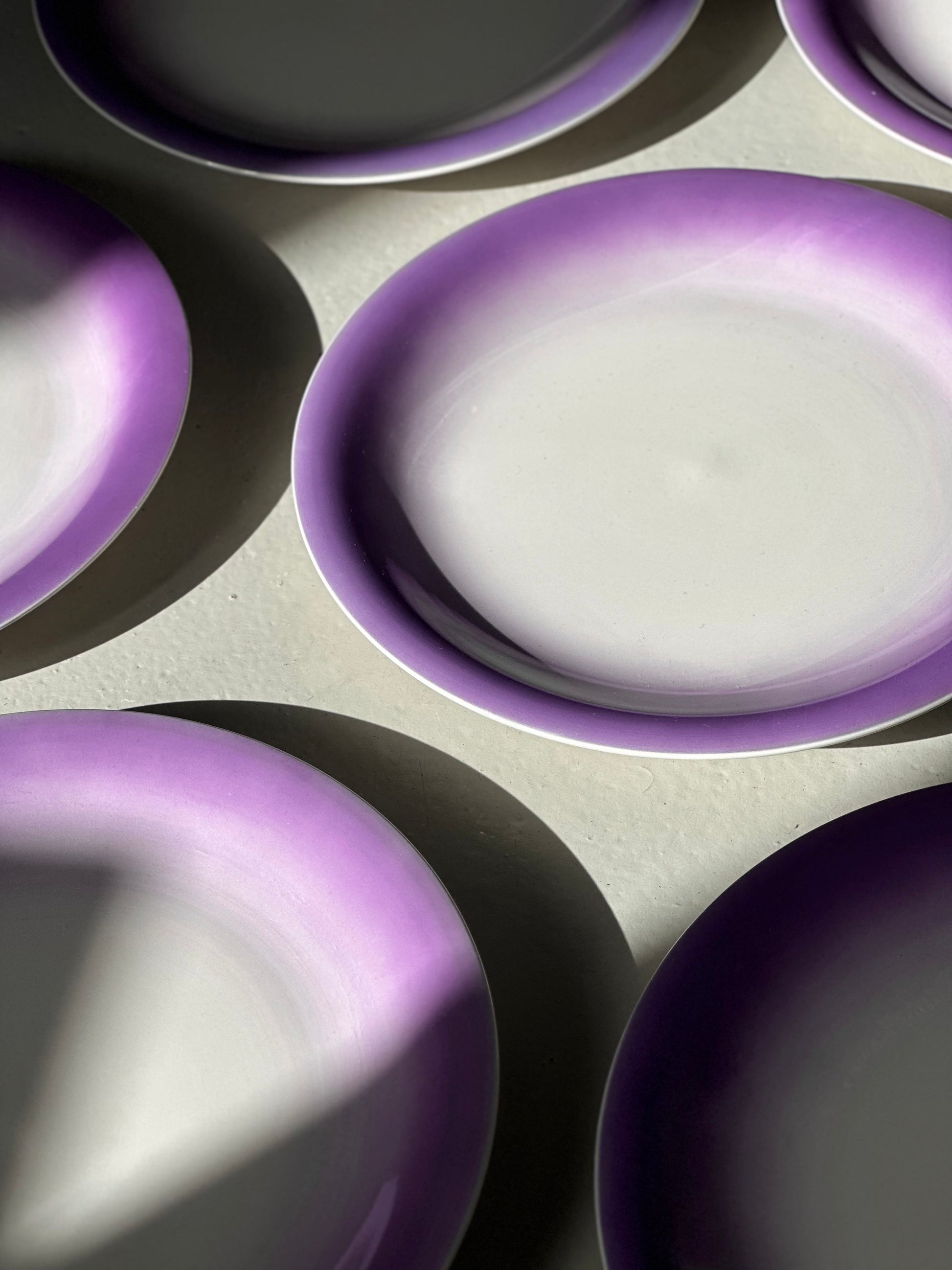 Italienske tallerkener med lilla fade kanter. De er fundet i Italien og er alle i flot stand uden skår.