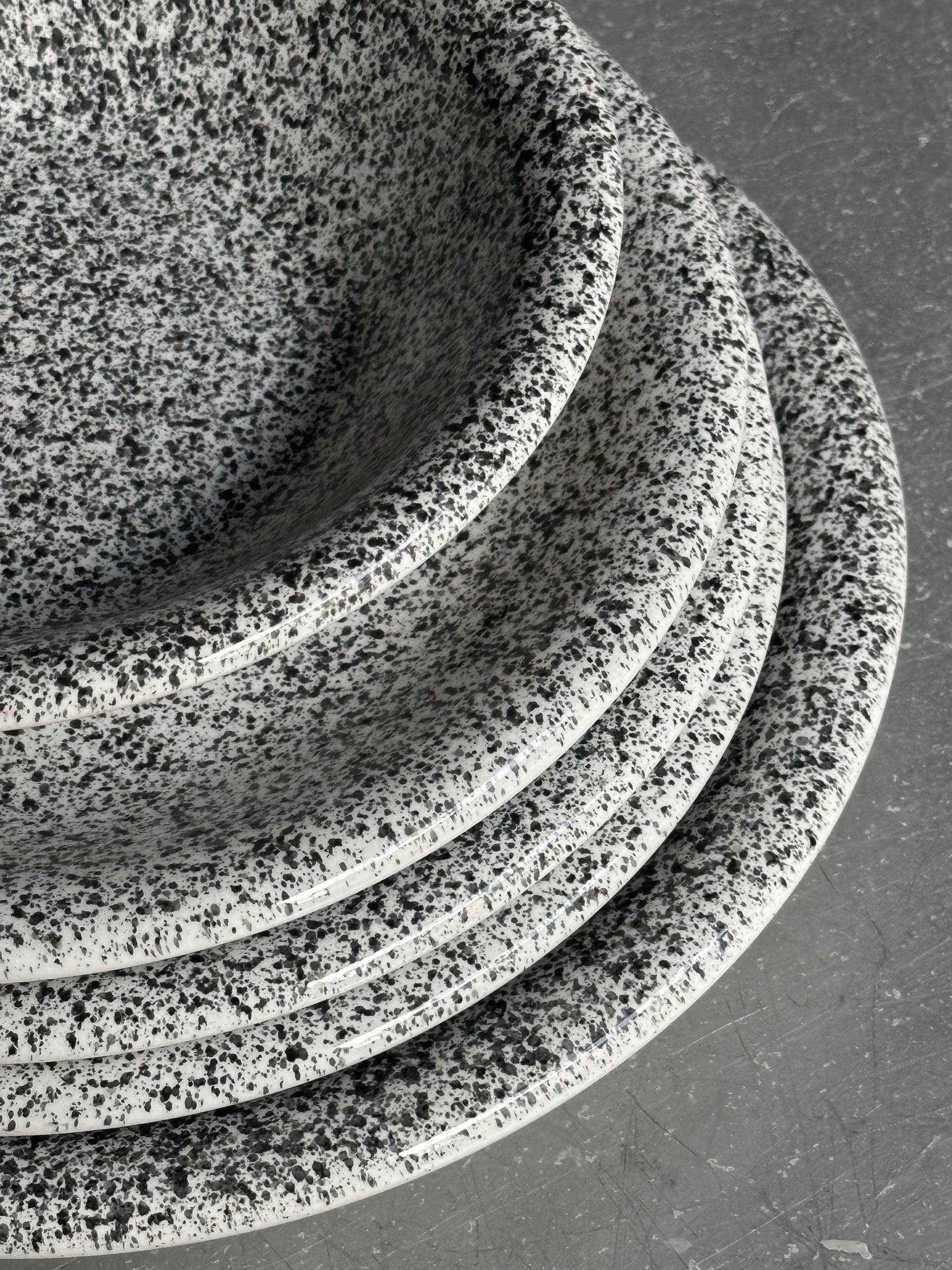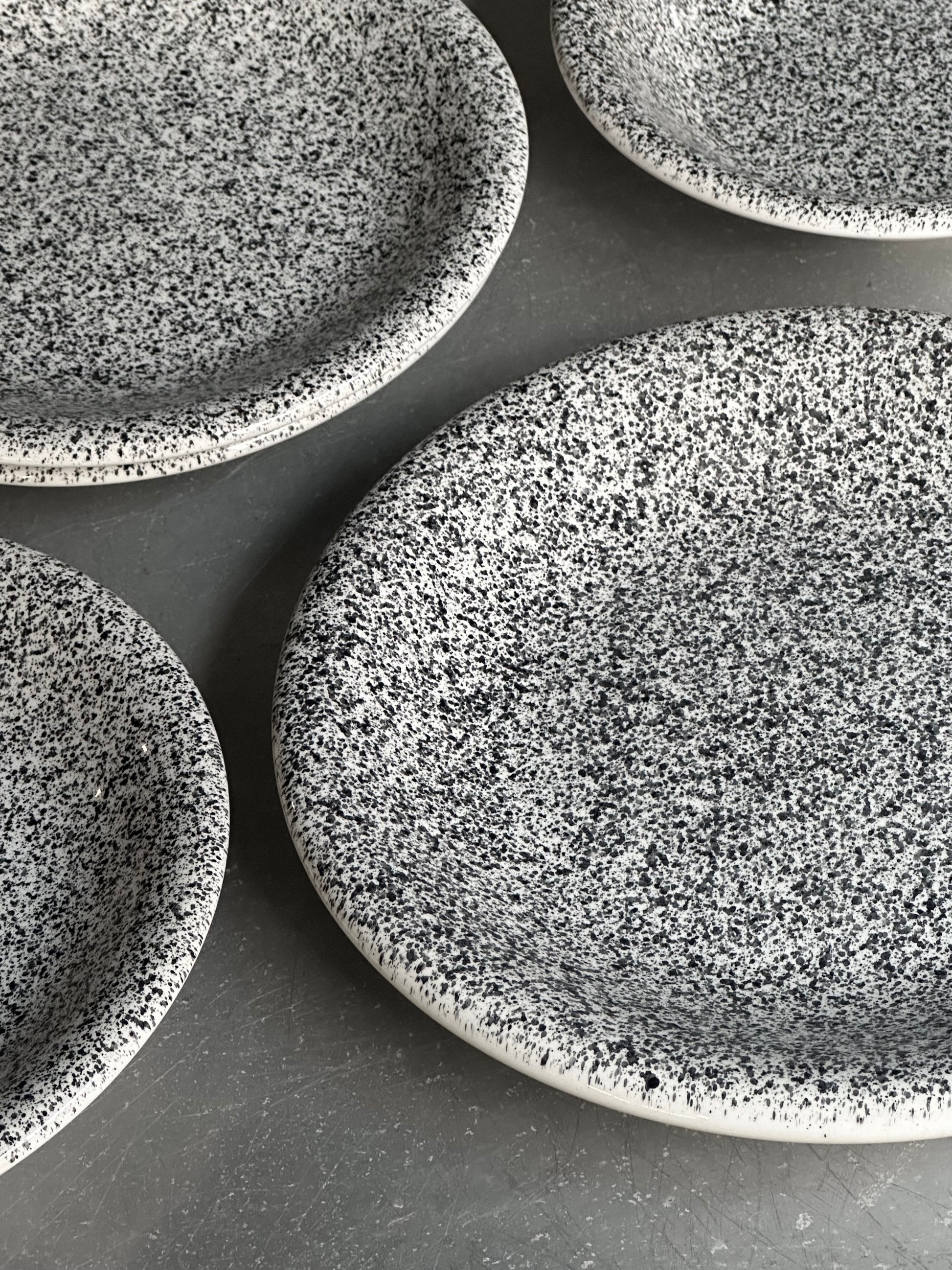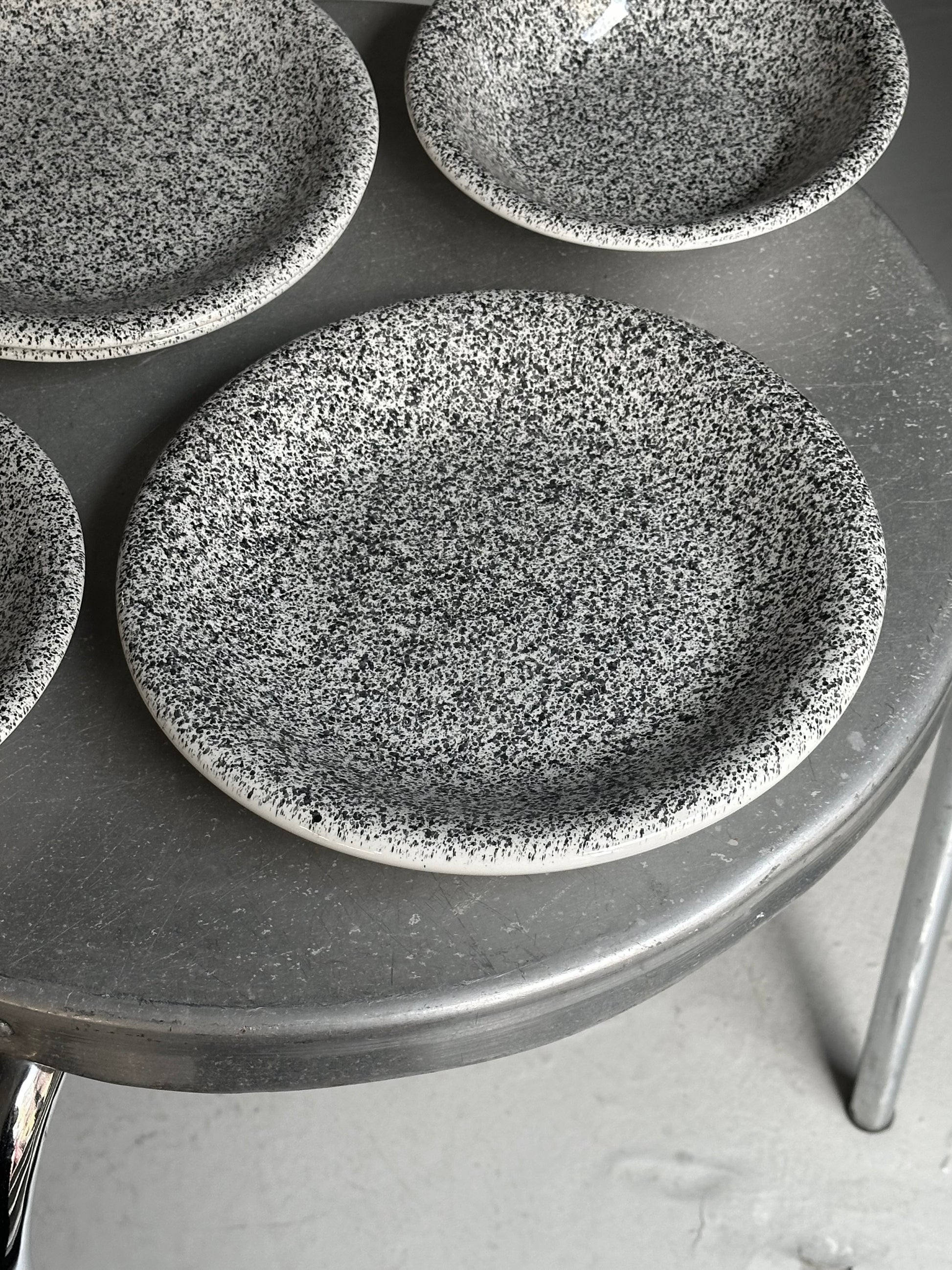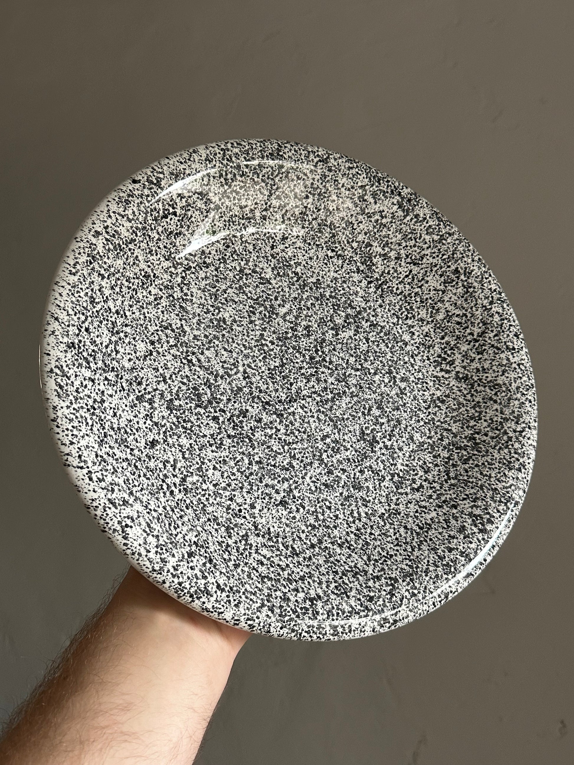 Italiensk vintage fad med den vildeste sort/hvid-nistrede glasur. Uden skår og i flot stand.