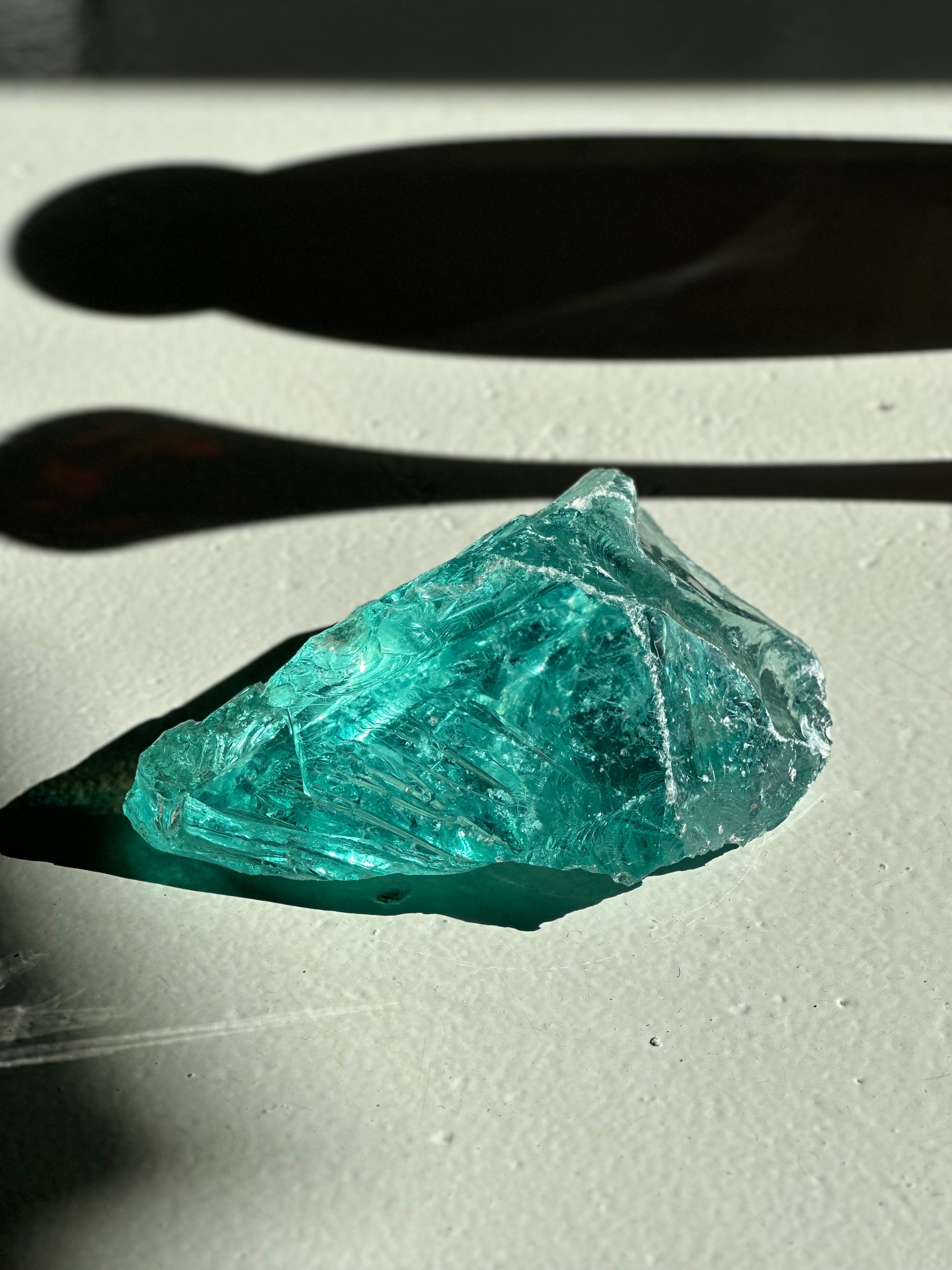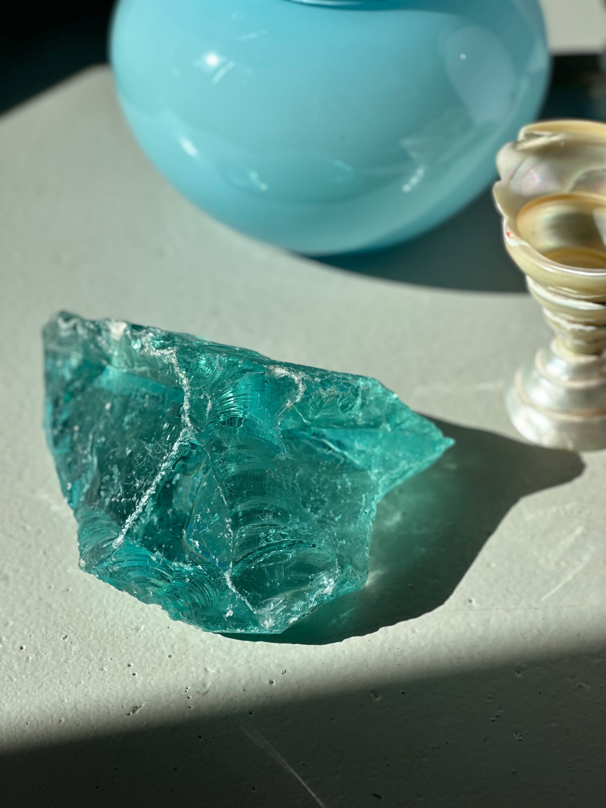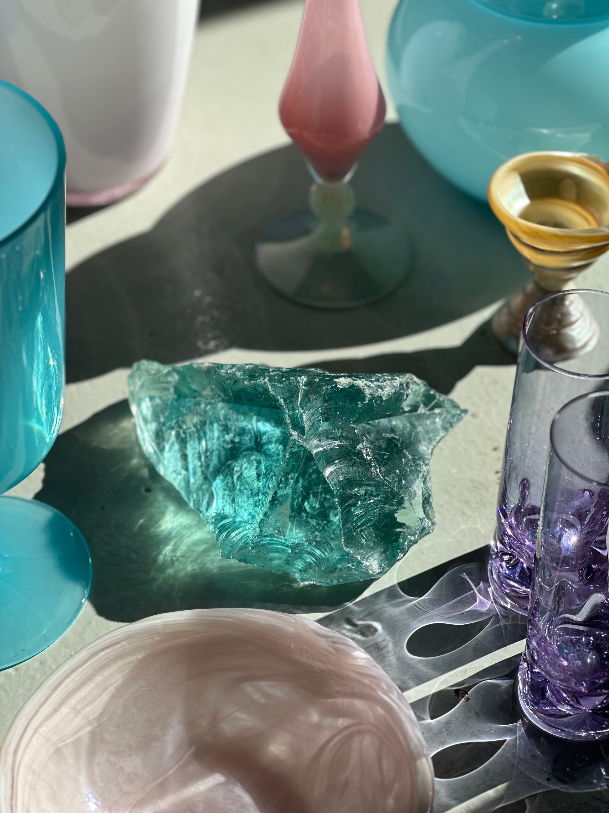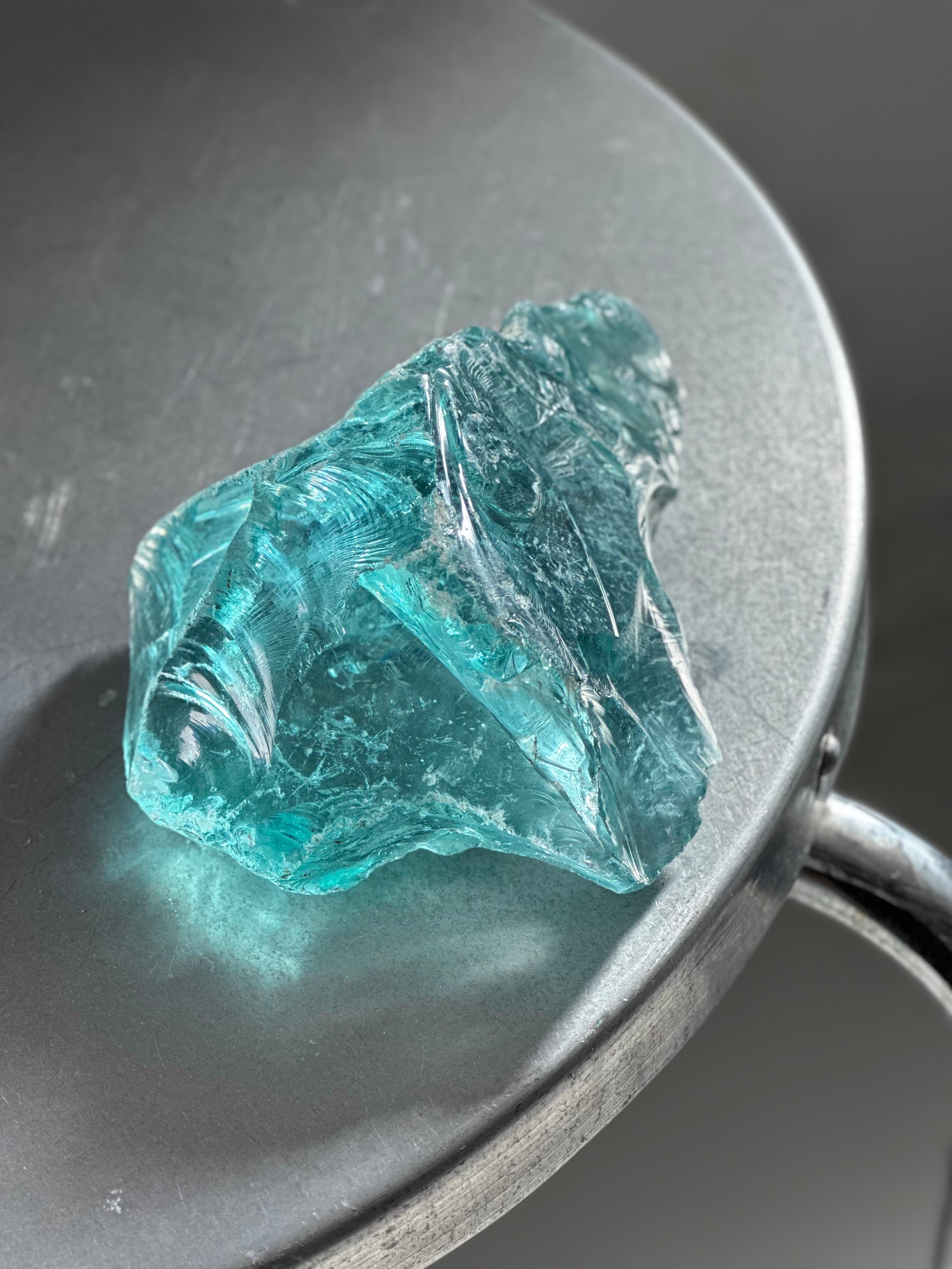 Stort gammelt stykke råglas. Den er skøn som skulptur og når solen rammer den er der ikke et øje tørt. Den er fundet i Italien og er i flot stand med let patina.