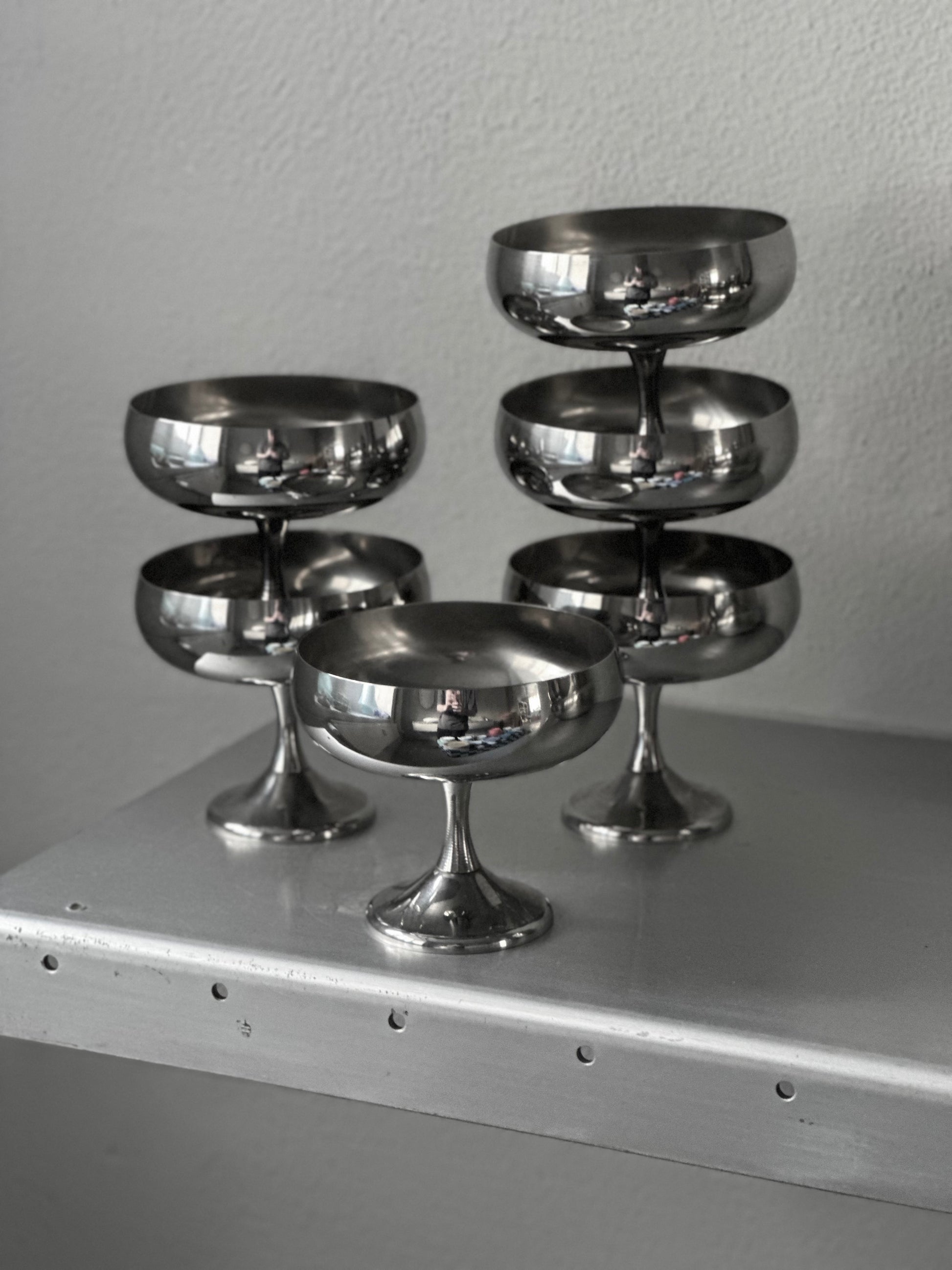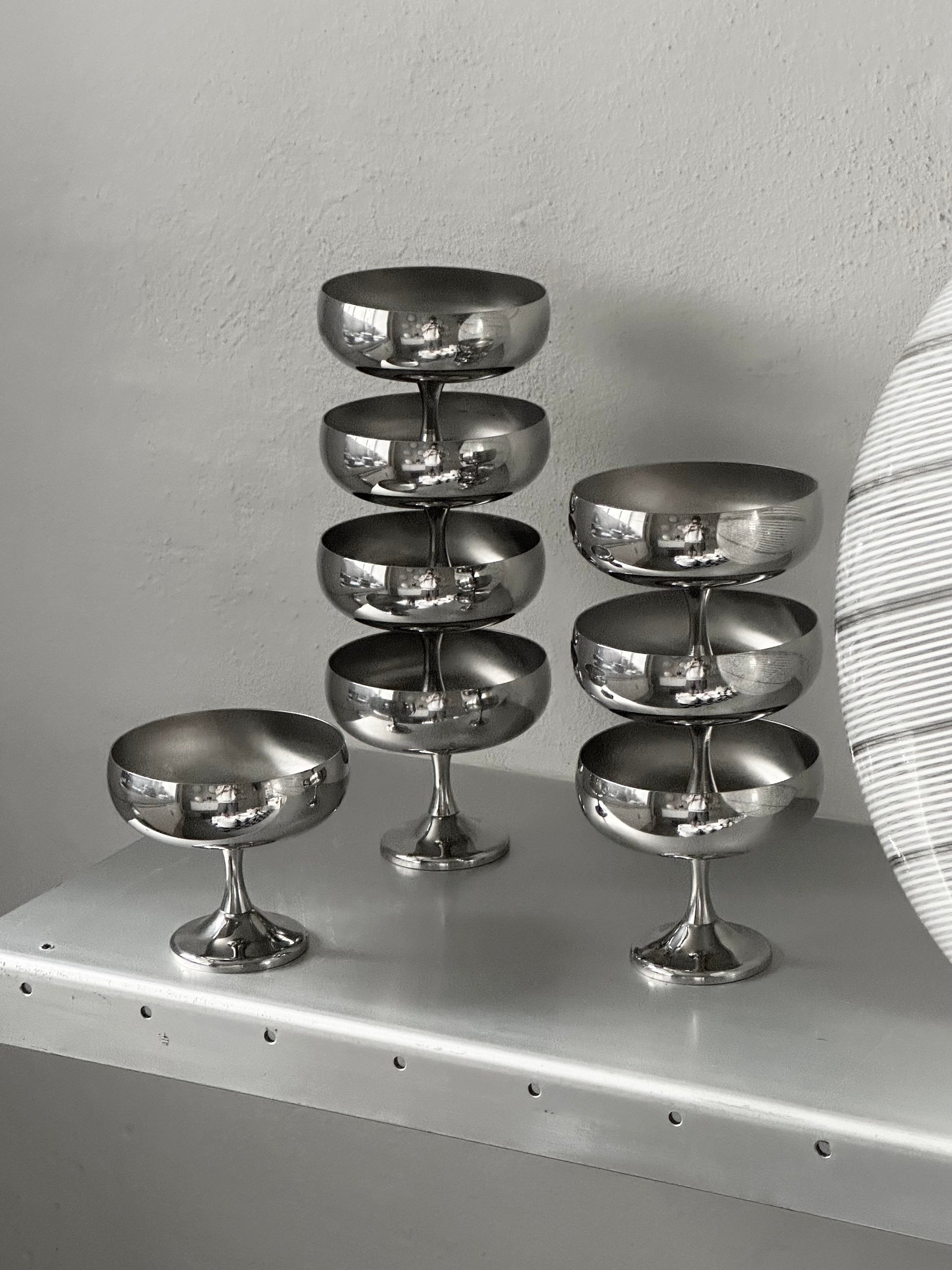 Italienske vintage skåle i stål med slank fod. De er fundet i Italien og er alle i super super flot stand.