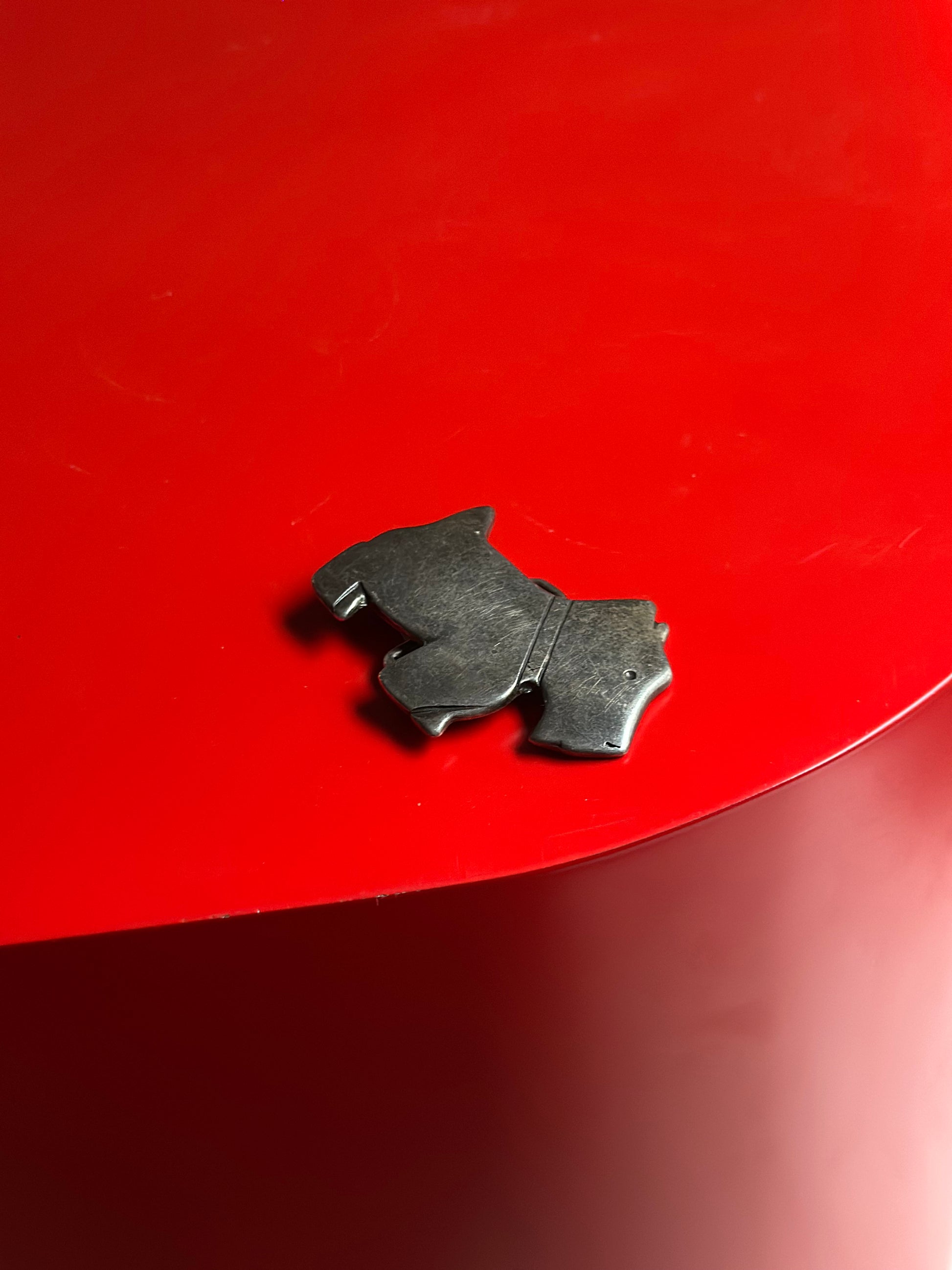 Vintage bæltespænde i stål med udformning som en skotsk terrier. Den er i super flot stand med lette brugsspor.