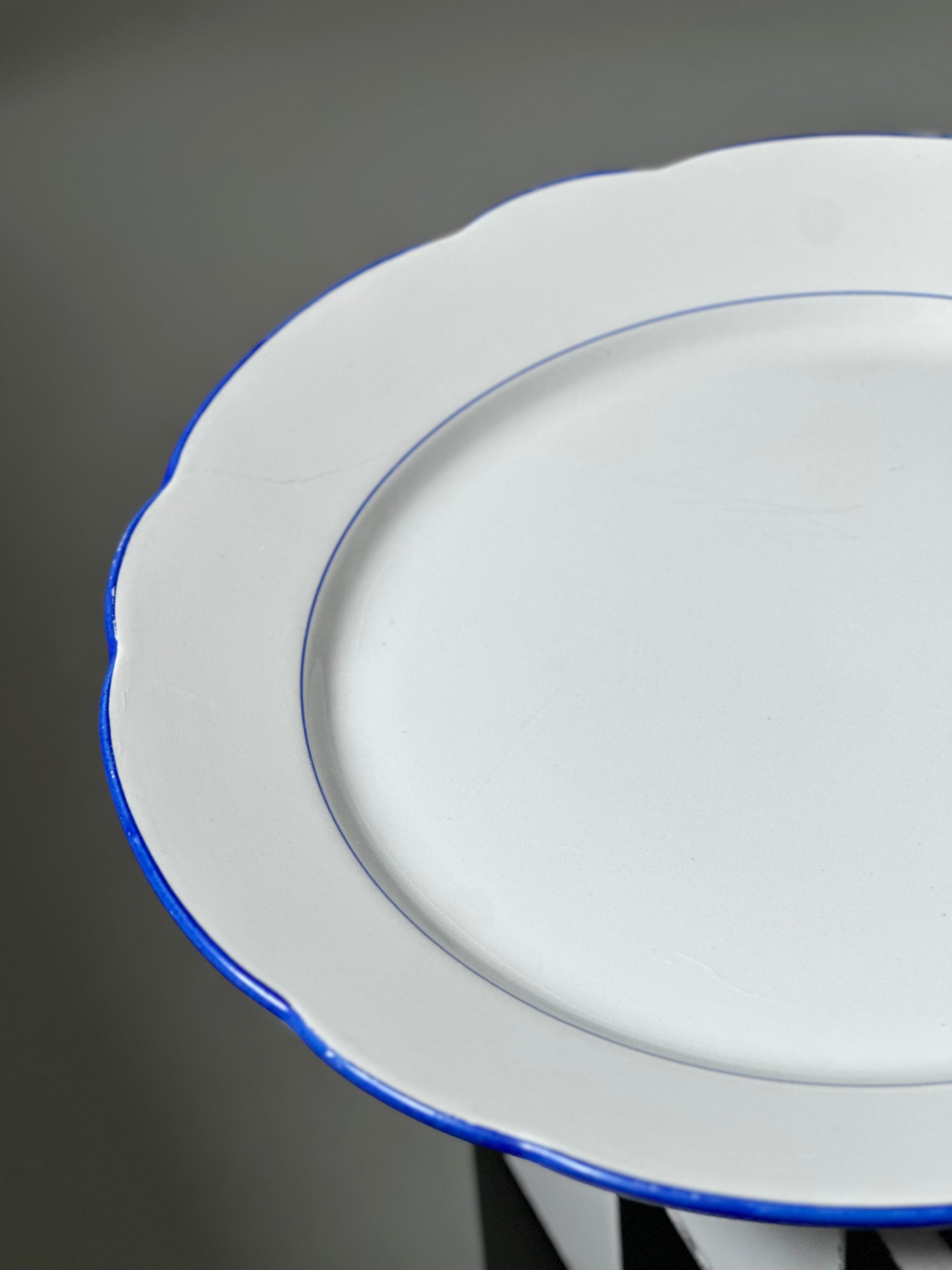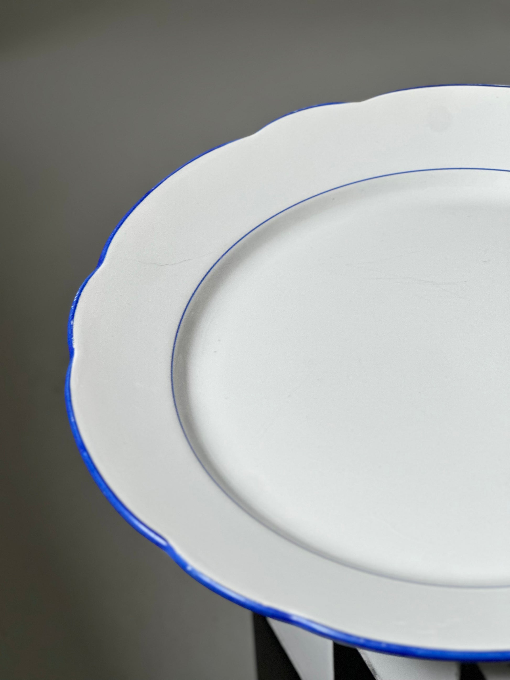 Italiensk vintage bistro fad hvidt porcelæn med blå kanter. Det er fundet i Italien og er i flot stand uden skår og kun alm lette brugsspor.