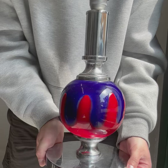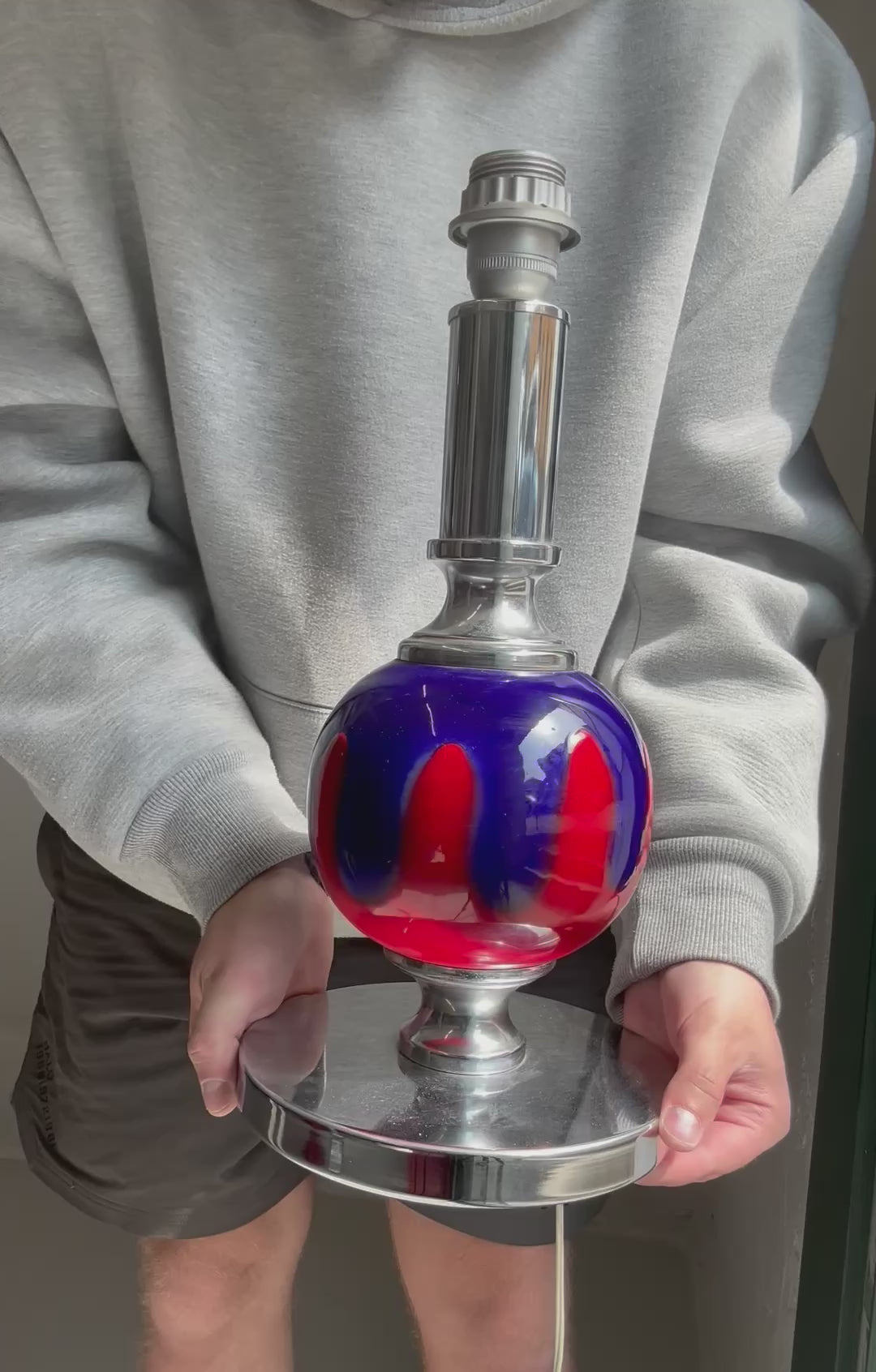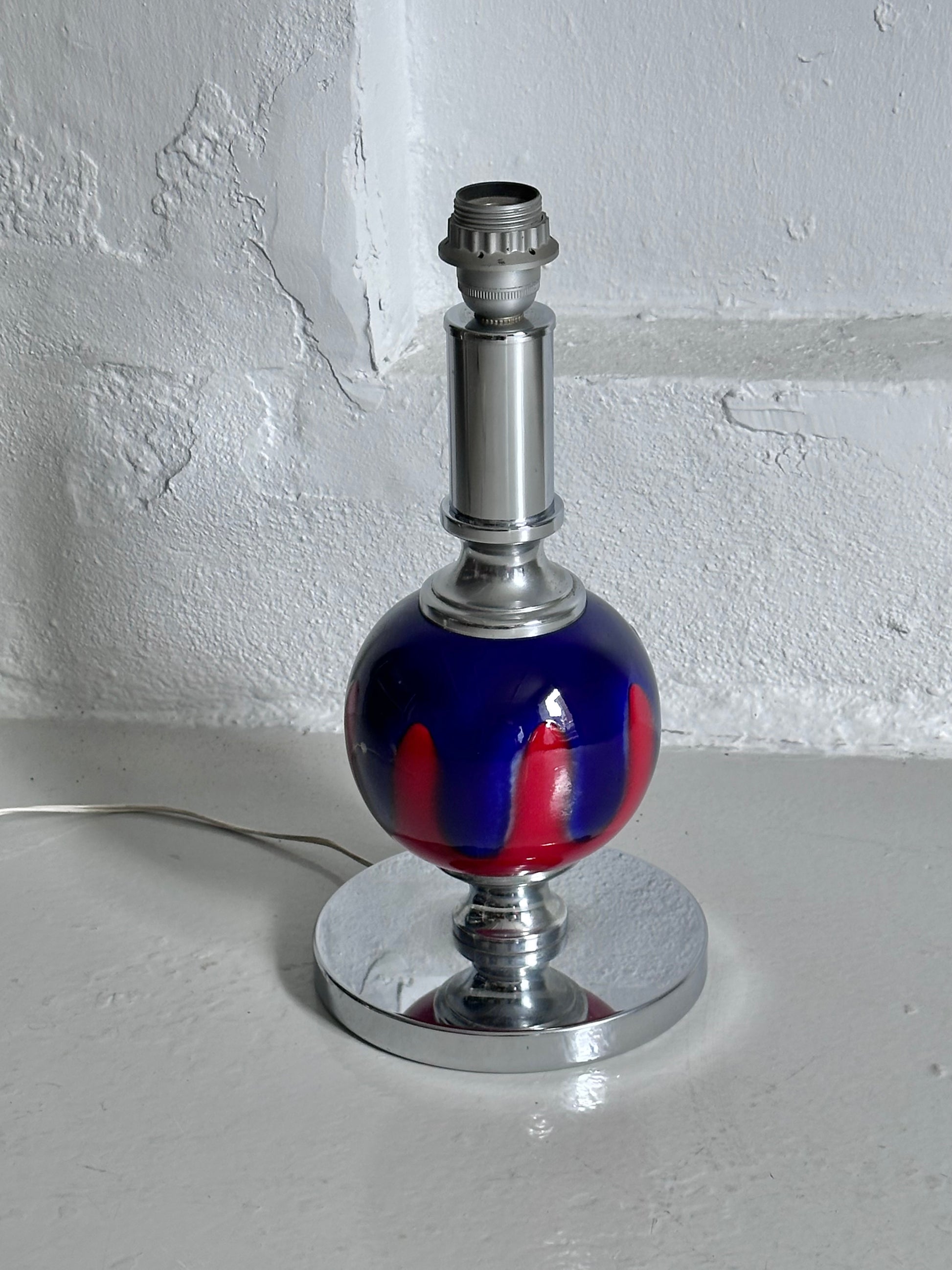 Vintage bordlampe fundet i Italien. Kuglen er glaseret med den fineste glasur og toppen og bunden er i krom. Den er i super flot stand med lette alm brugsspor.