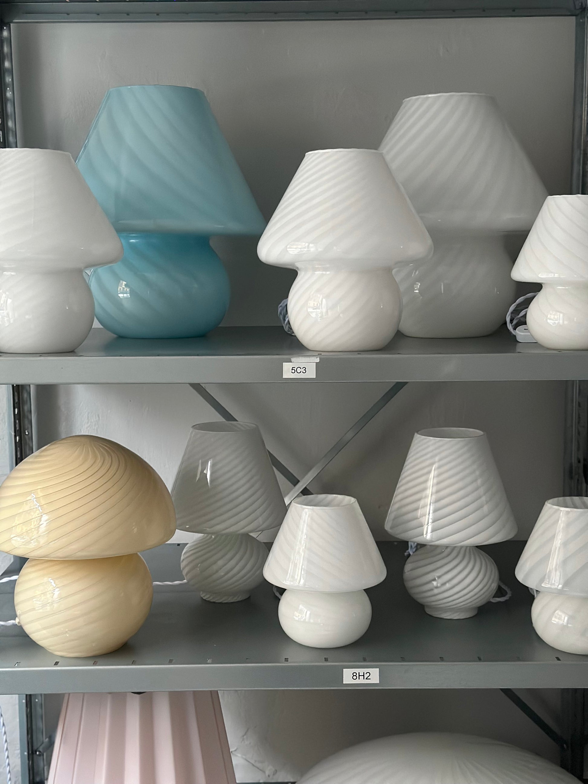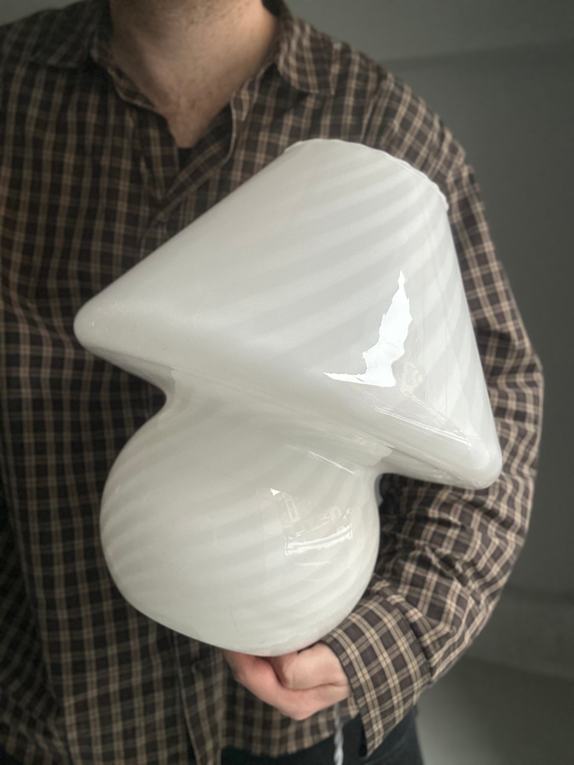 Vintage Murano Swirl Mushroom Lamper - Hvid