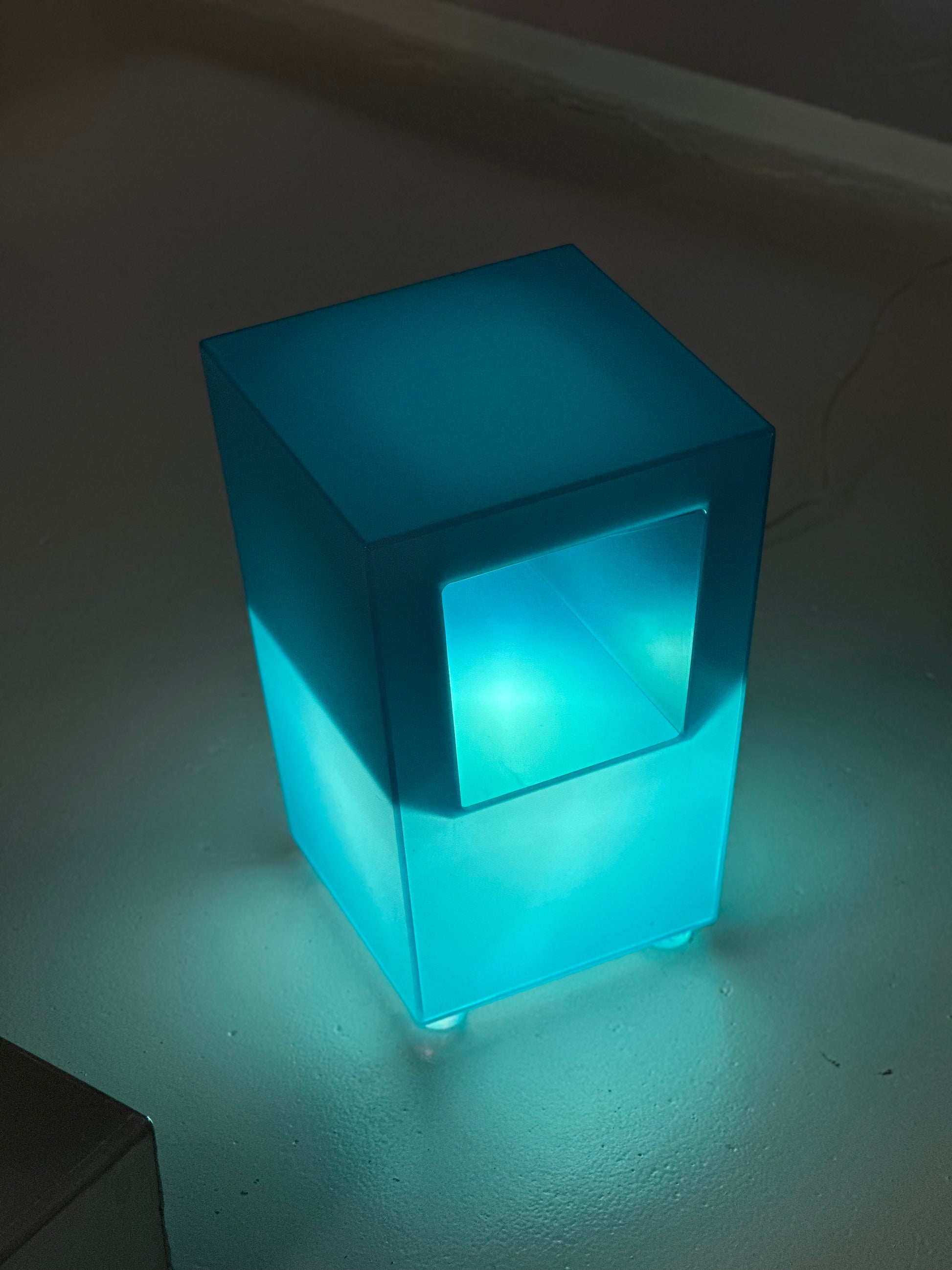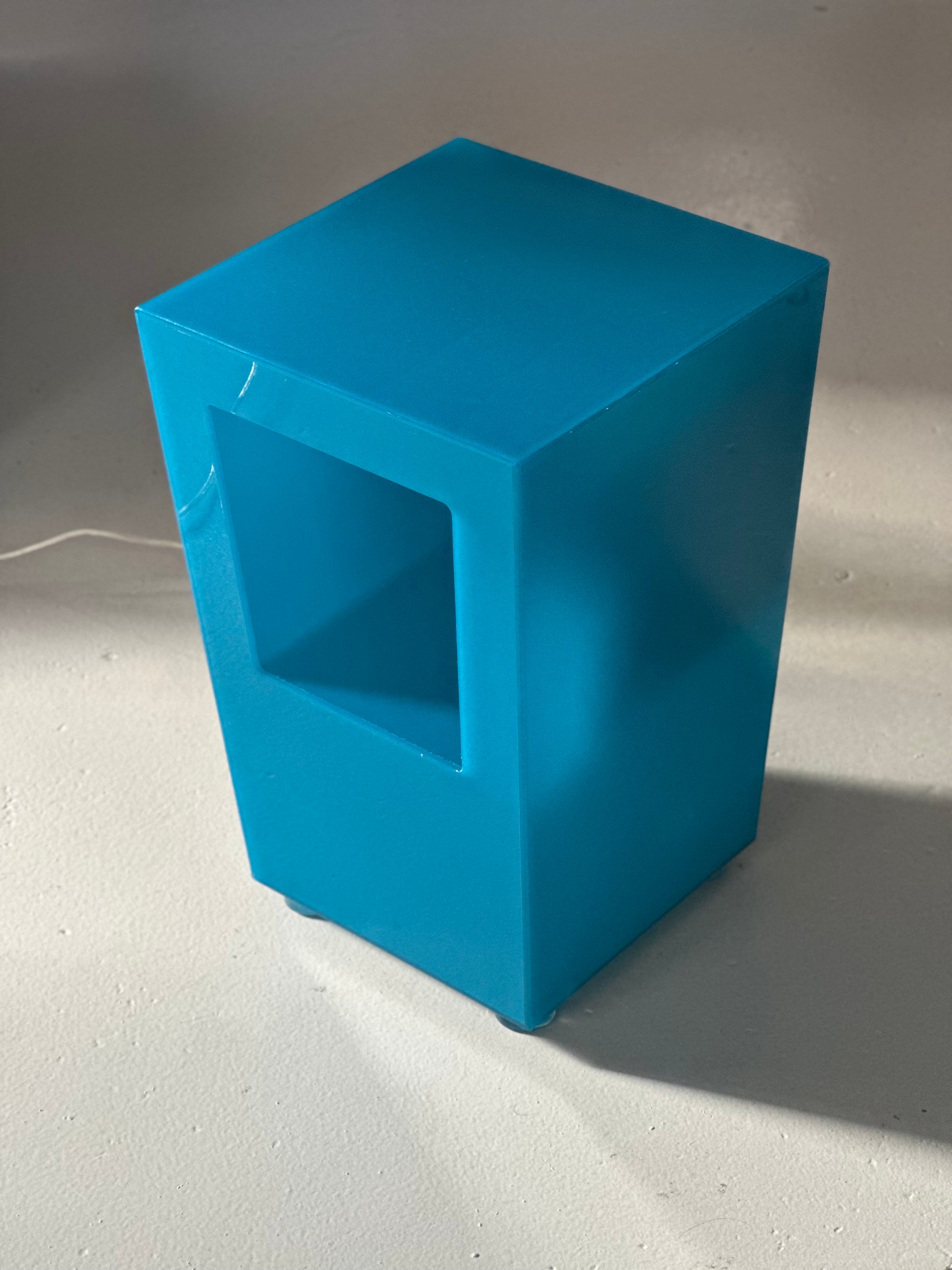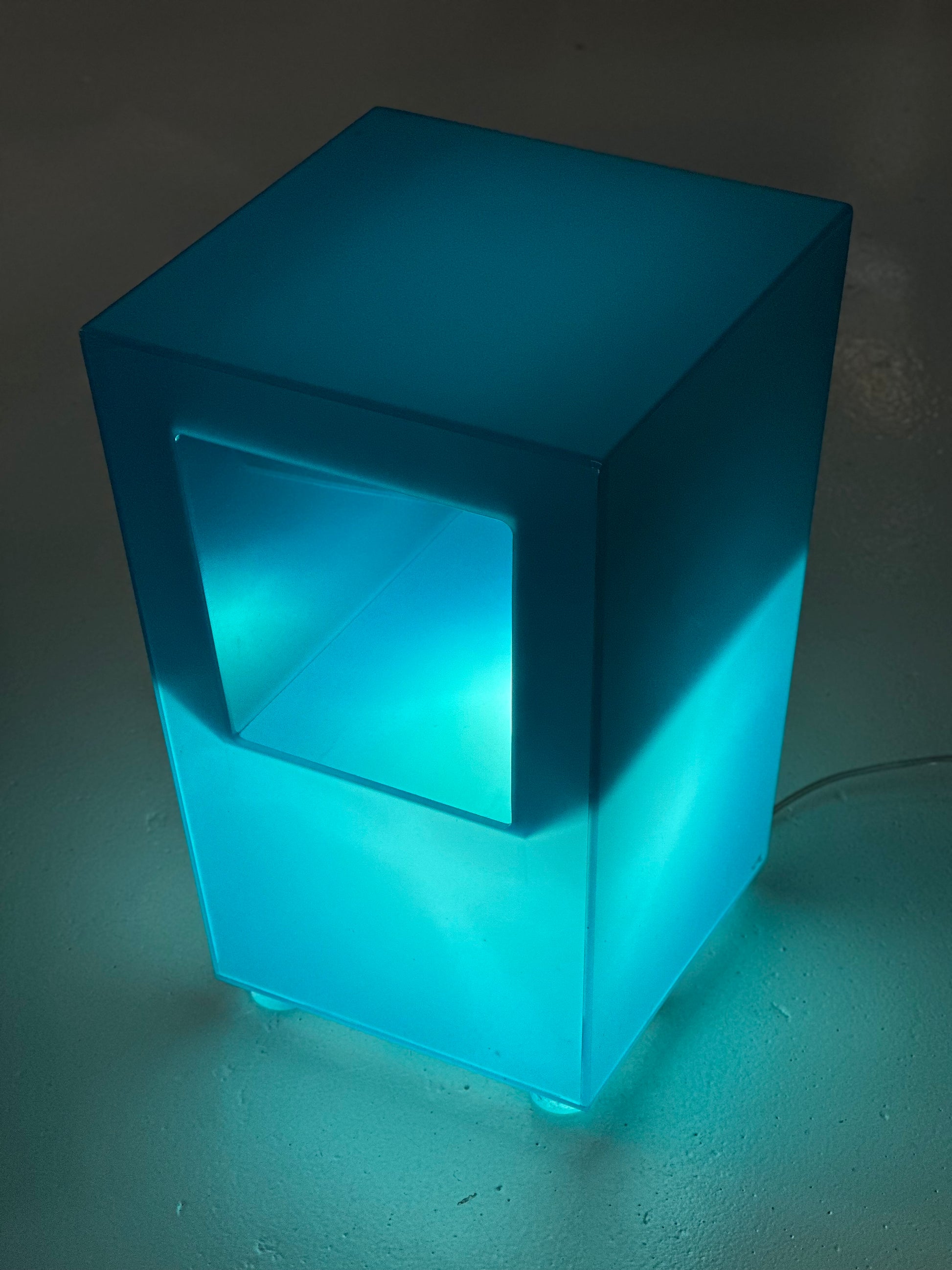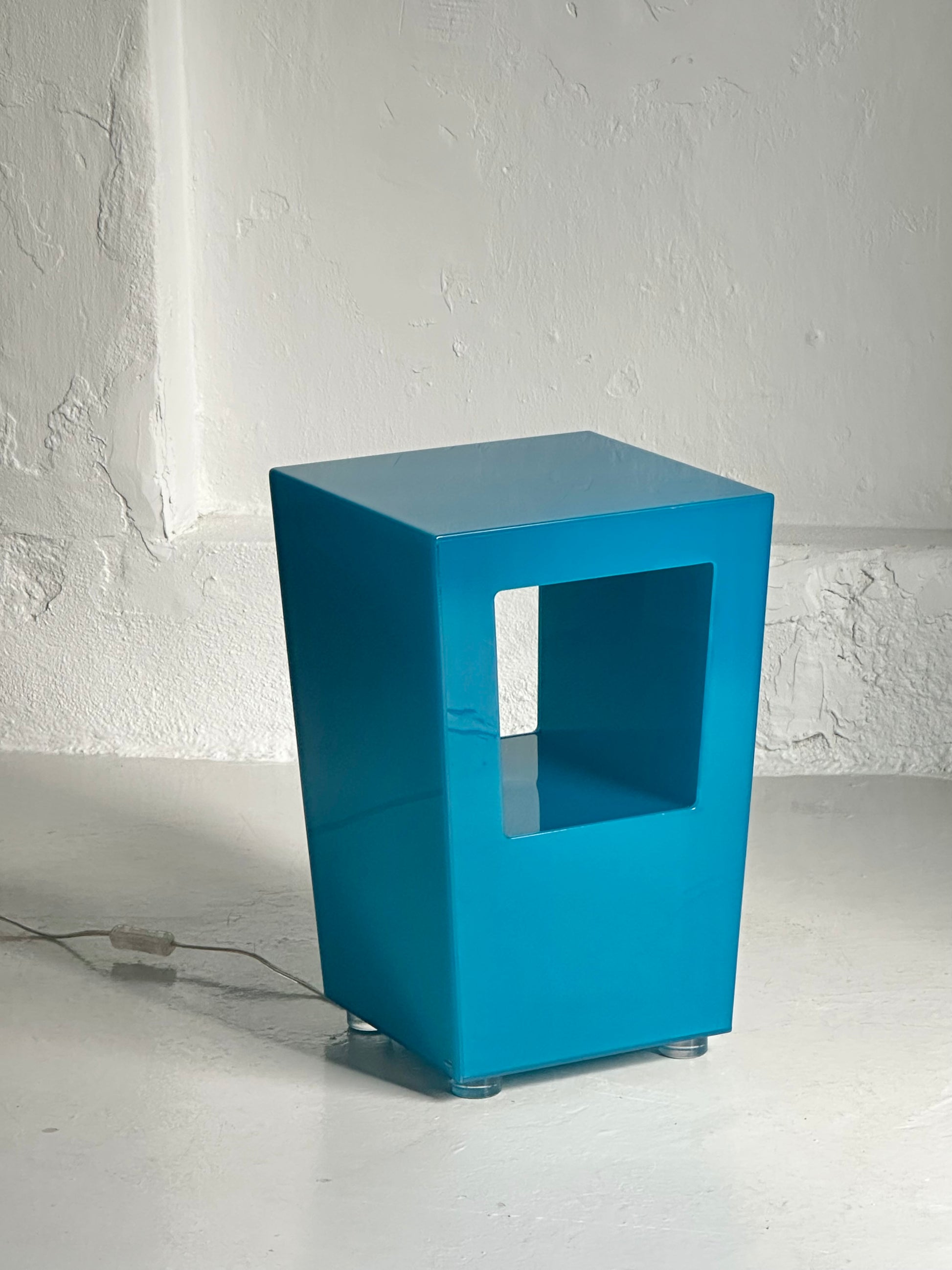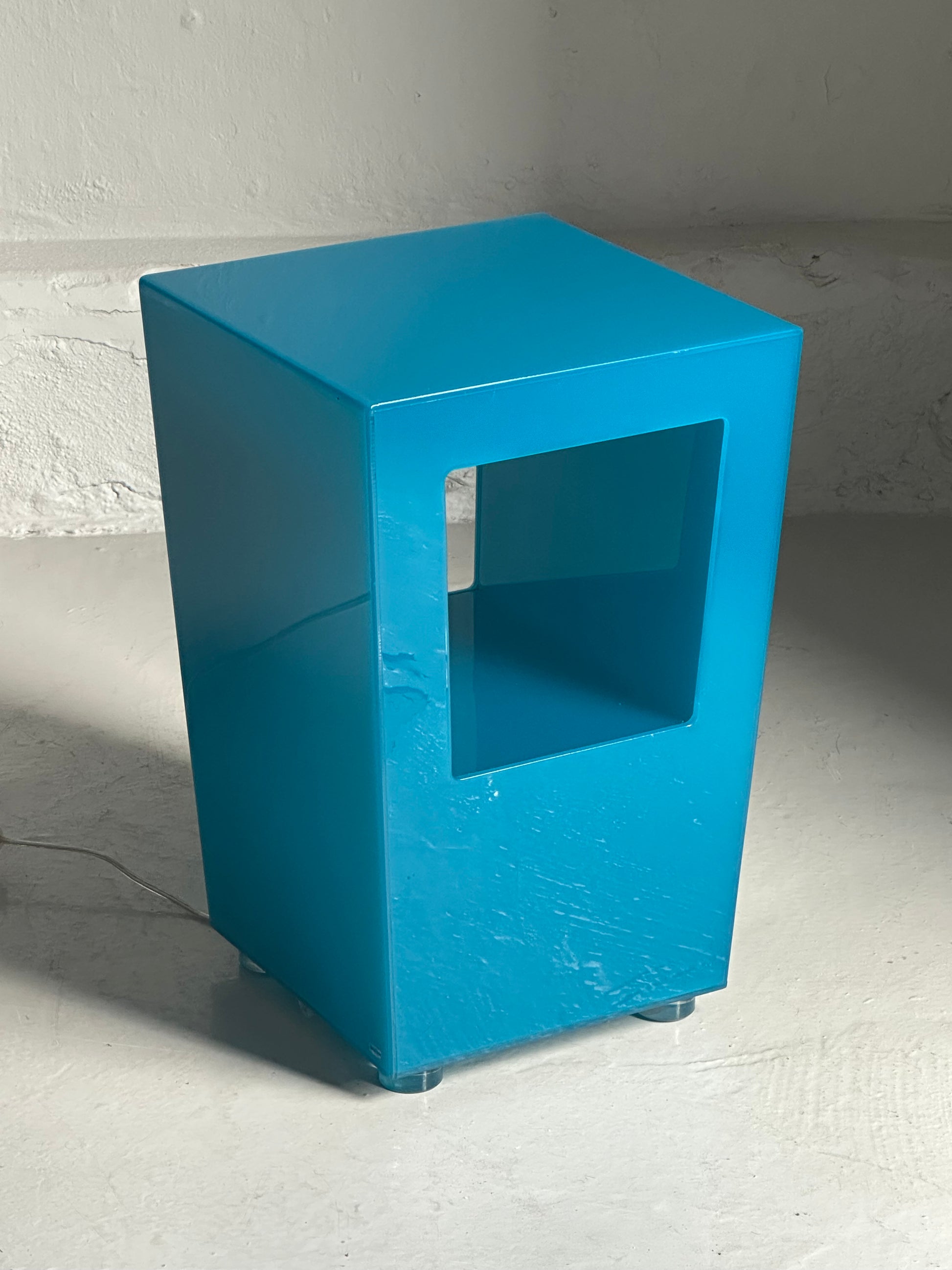 Vintage sidebord i turkis akryl med lys i. Bordet er i super flot stand med kun alm lette brugsspor.
