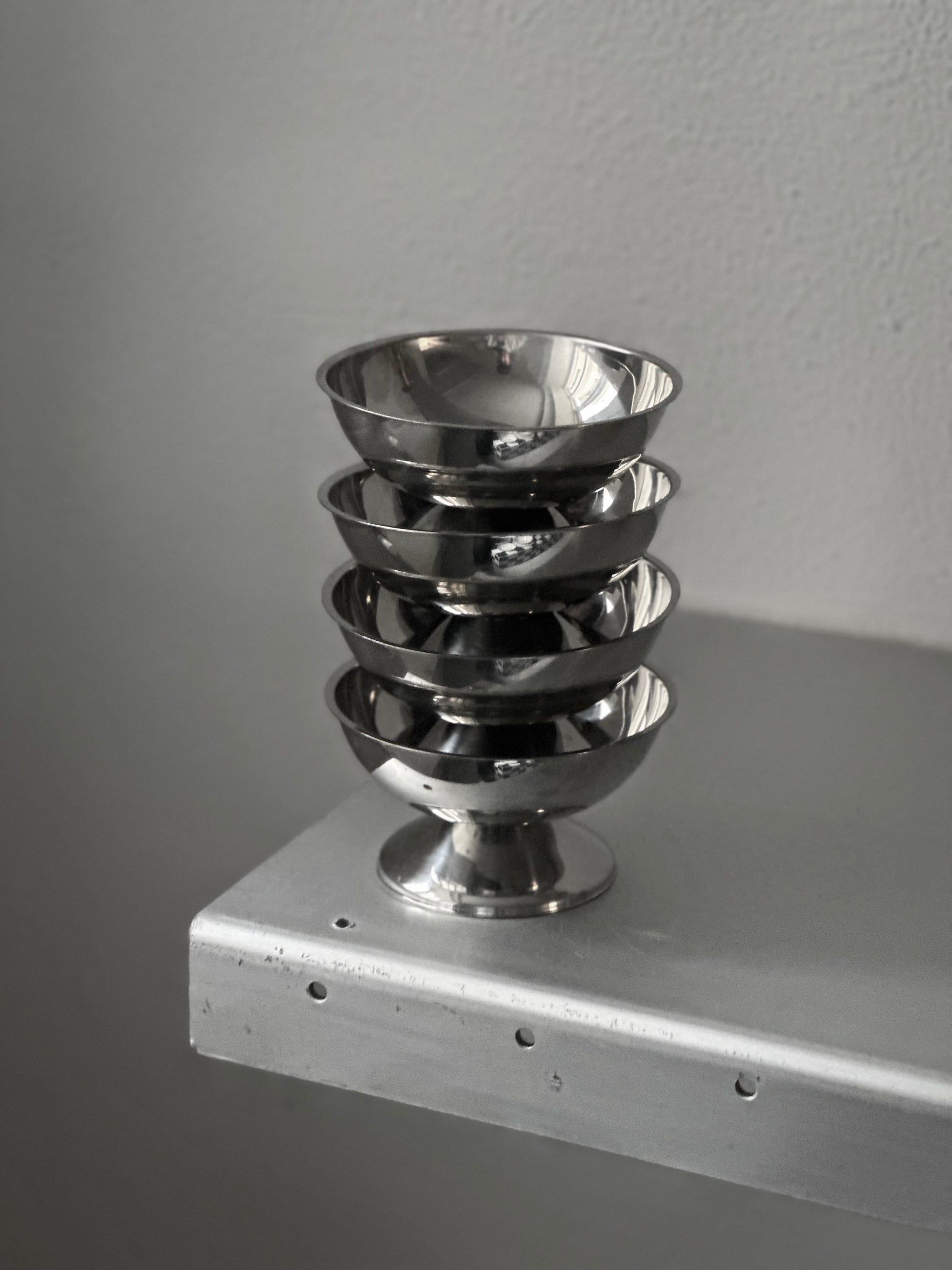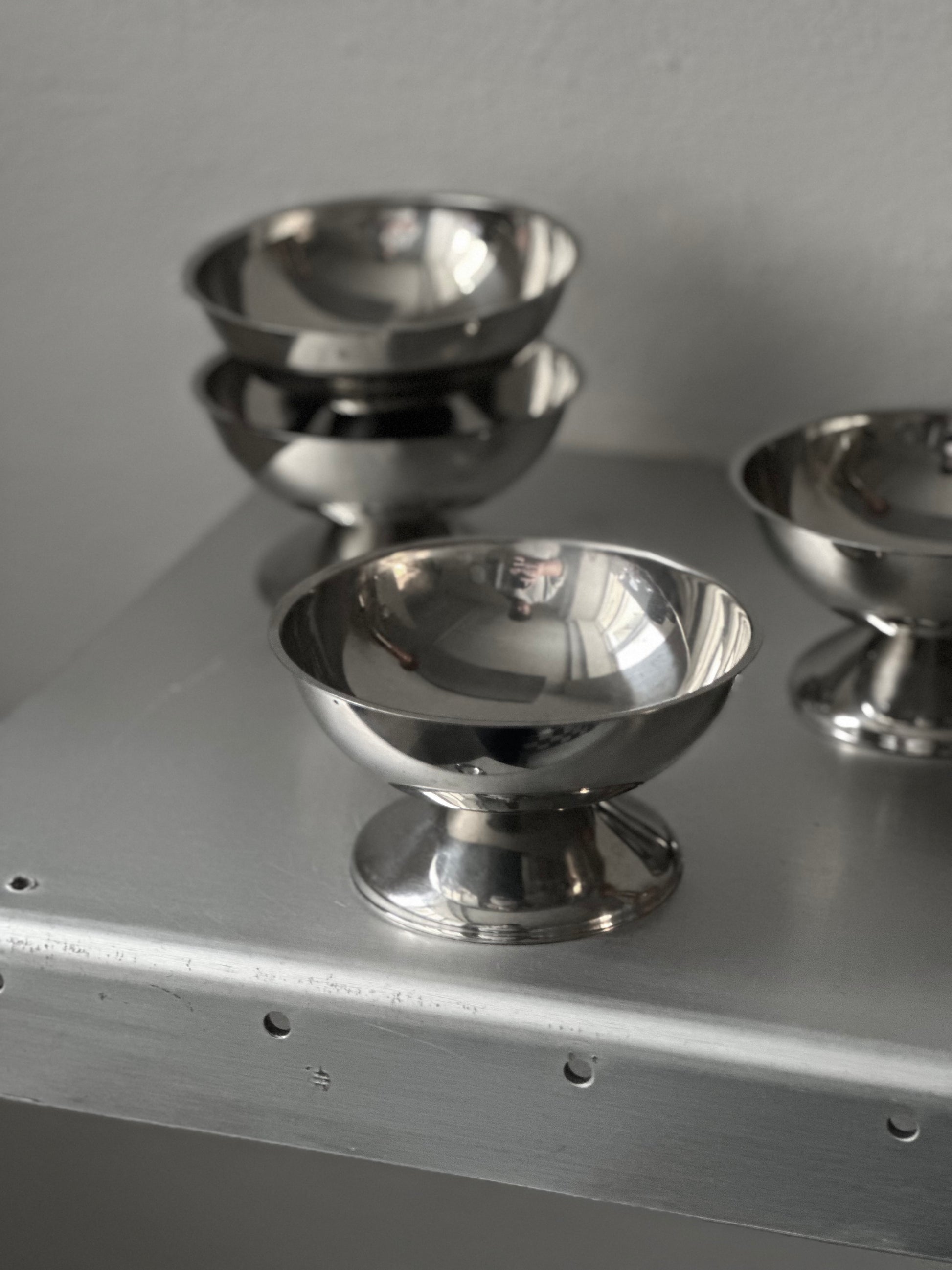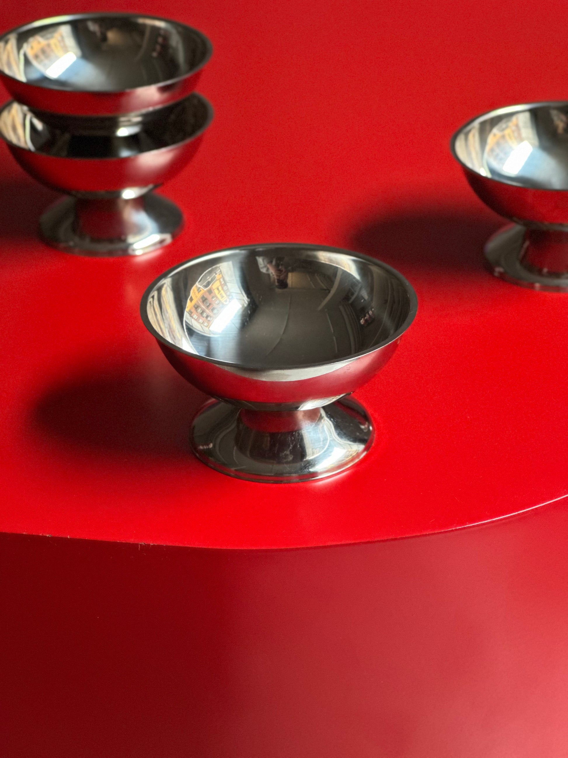 Italienske vintage stål skåle på fod. De er fundet i Italien og er alle i flot stand.