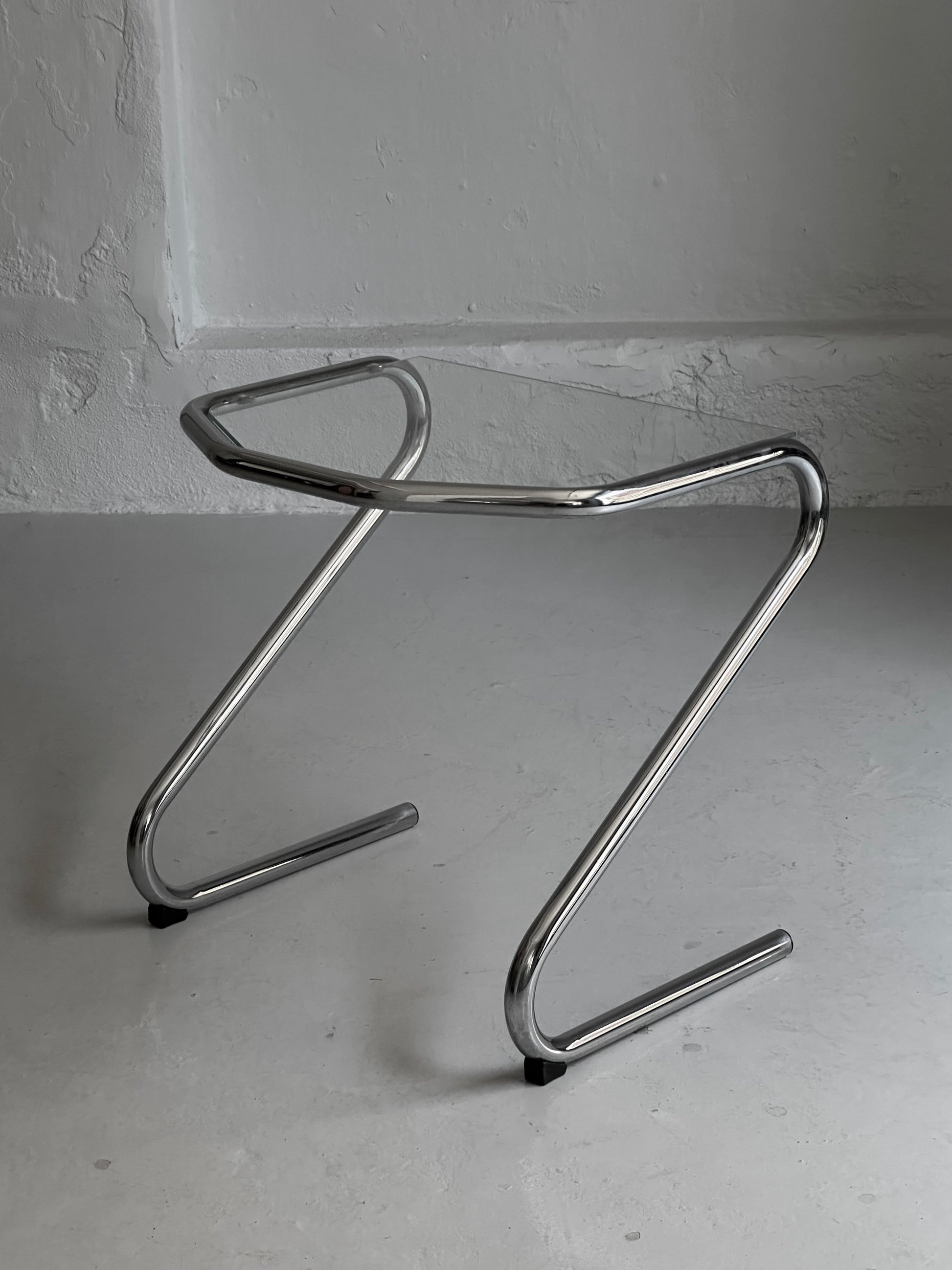 Vintage sidebord i Z form med kromstel og glas bordplade. Det er i flot stand, uden skår og med kun alm lette brugsspor.